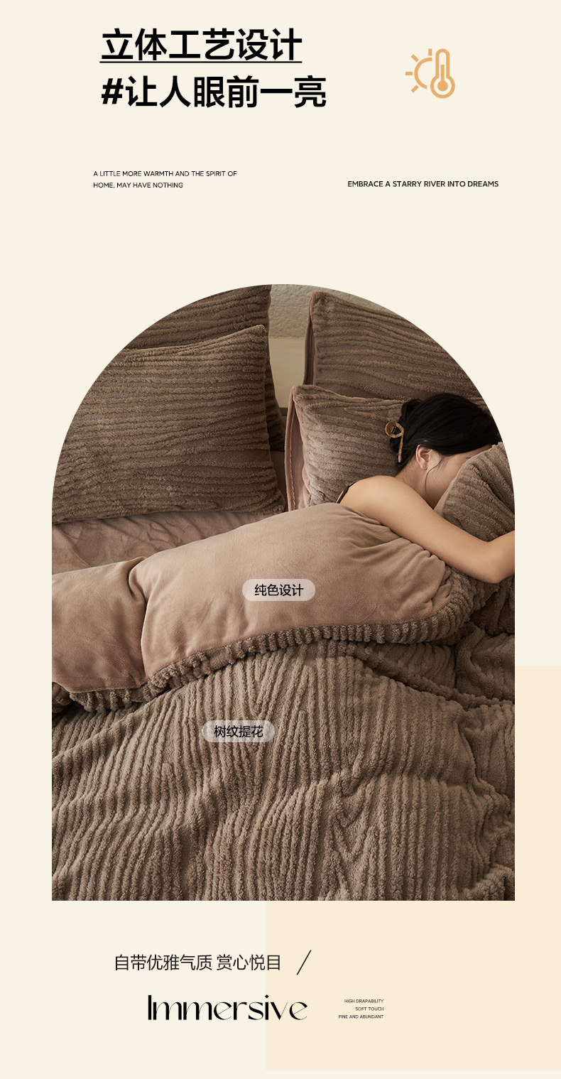 (总)寐绸家纺 2025秋冬新款230g牛奶绒树纹提花四件套
