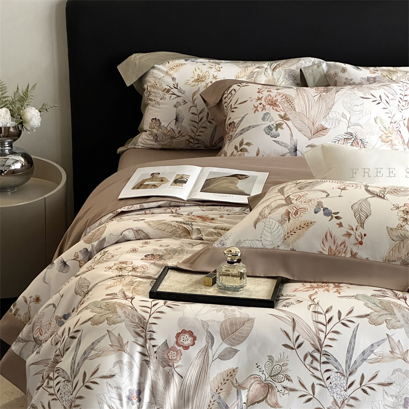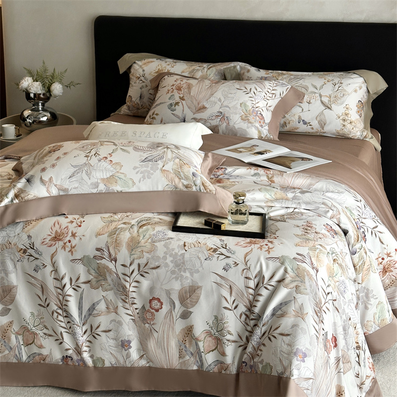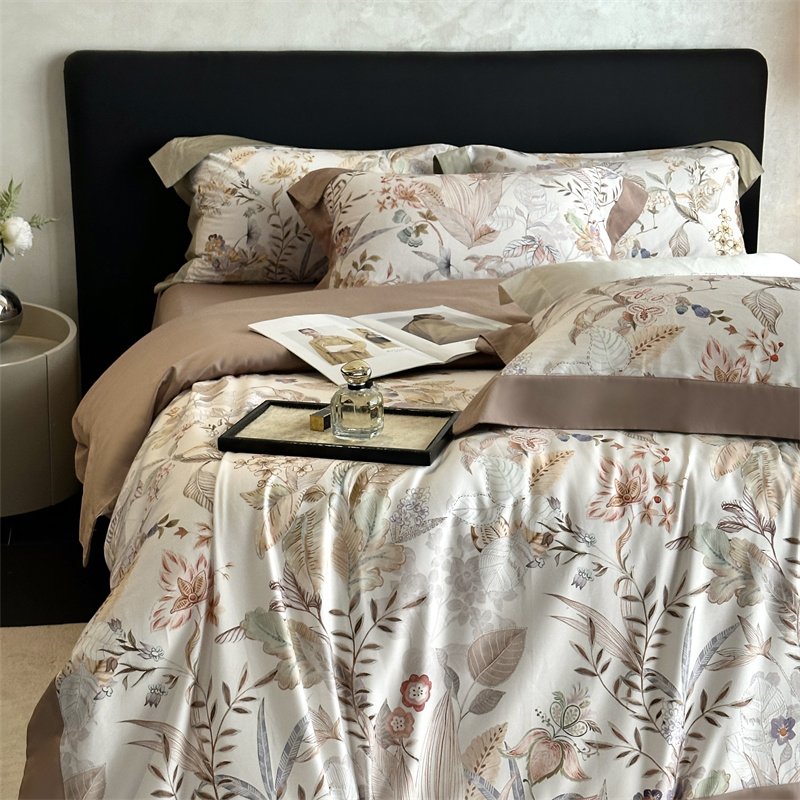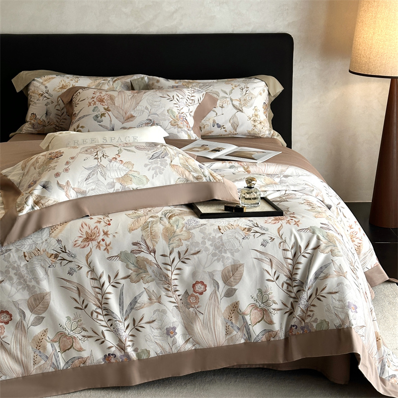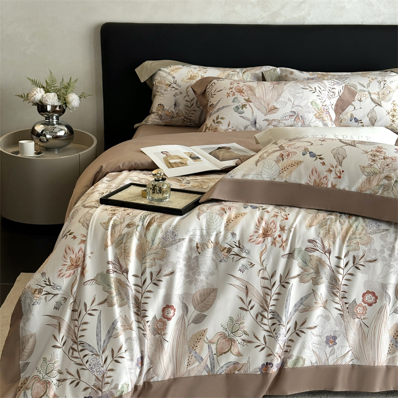 南泉坊 2025新款长绒棉纯棉丝光工艺数码印花四件套 晚柠-咖