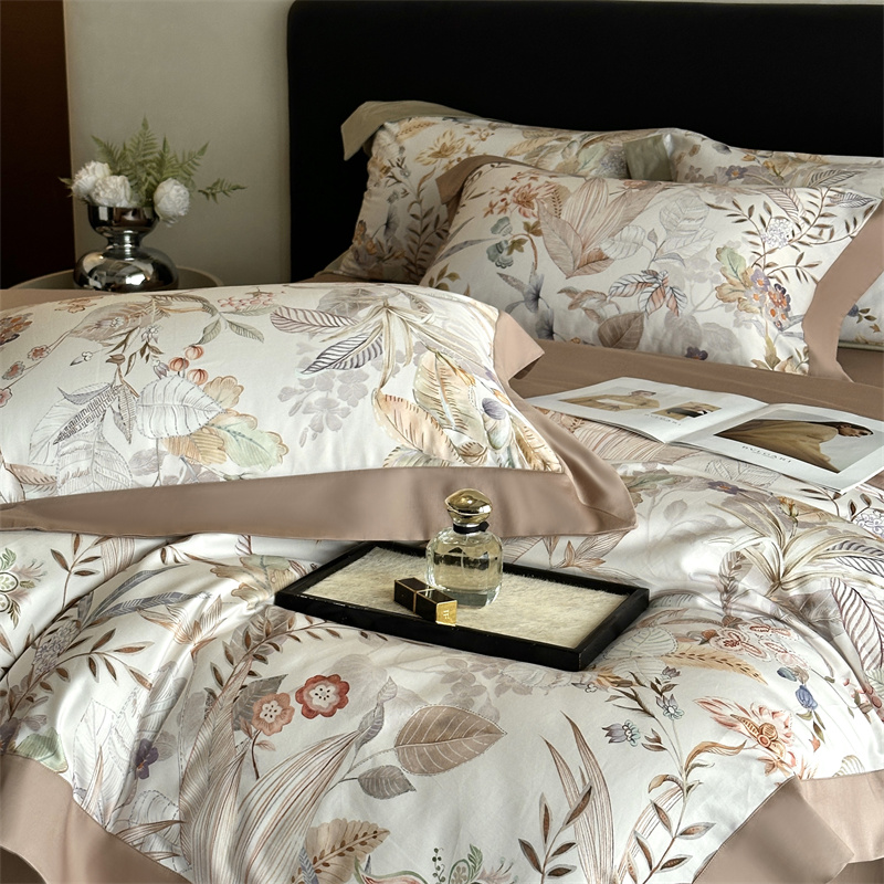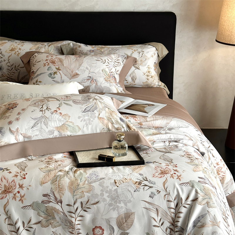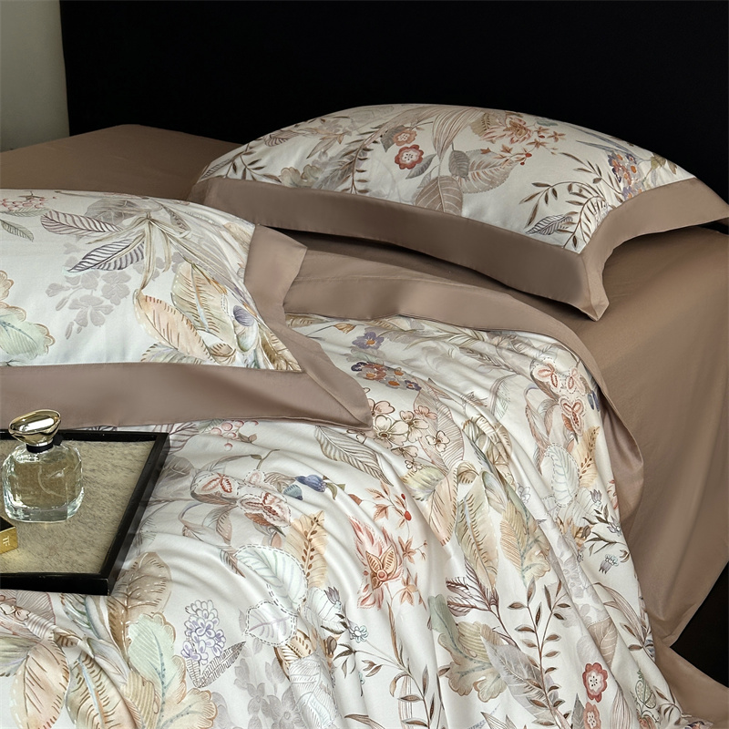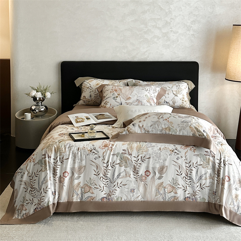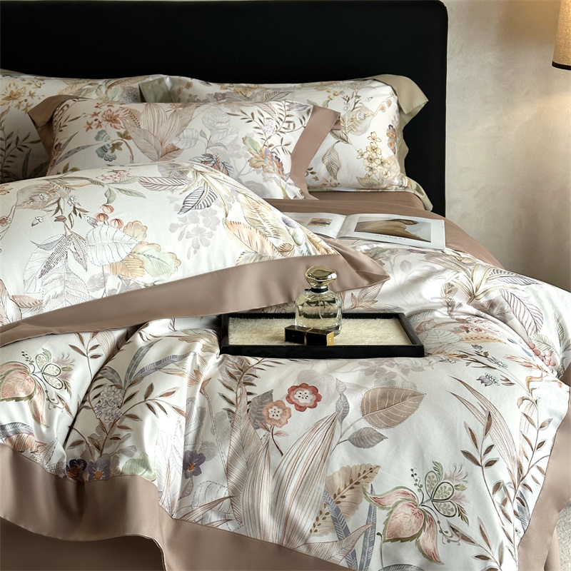 南泉坊 2025新款长绒棉纯棉丝光工艺数码印花四件套 晚柠-咖