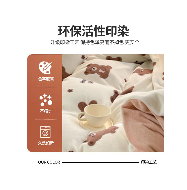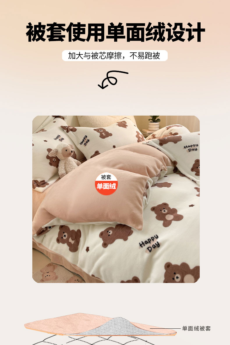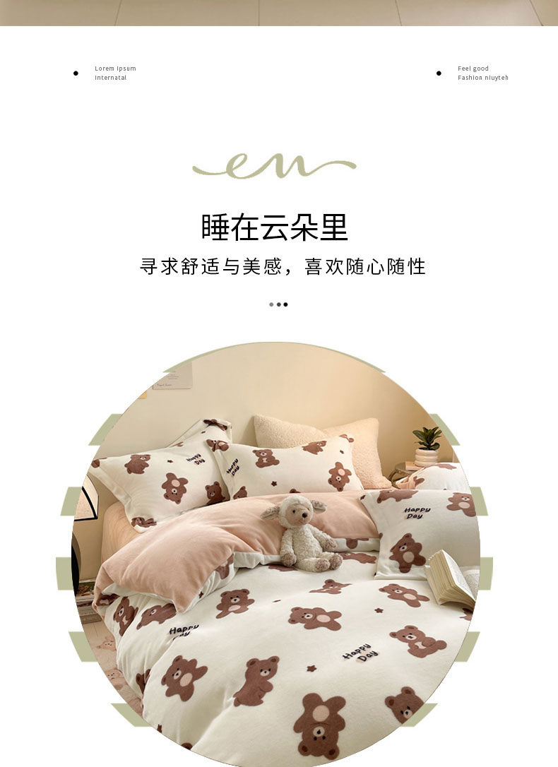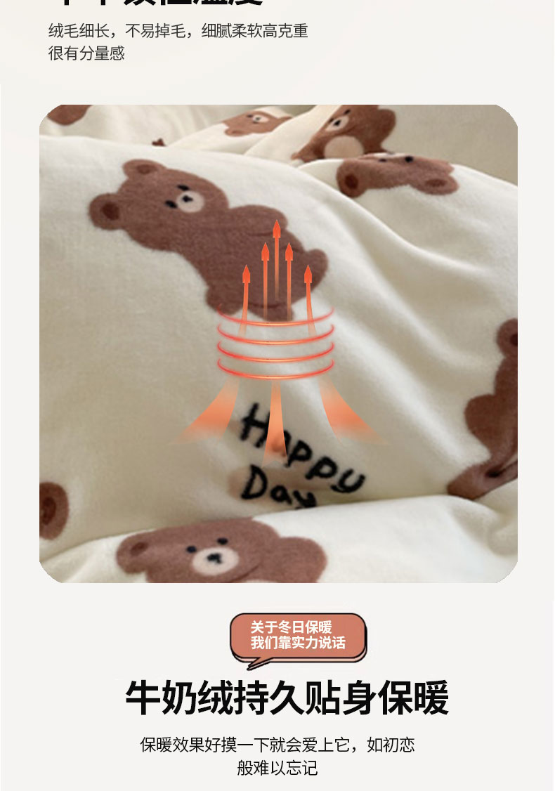 当前位置: 91家纺网 > 商品网购 > 床品套件 > 四件套 > 牛奶绒四件套 > 宅部落 2025新款高克重牛奶绒四件套法莱绒三件套单被套 小棕熊