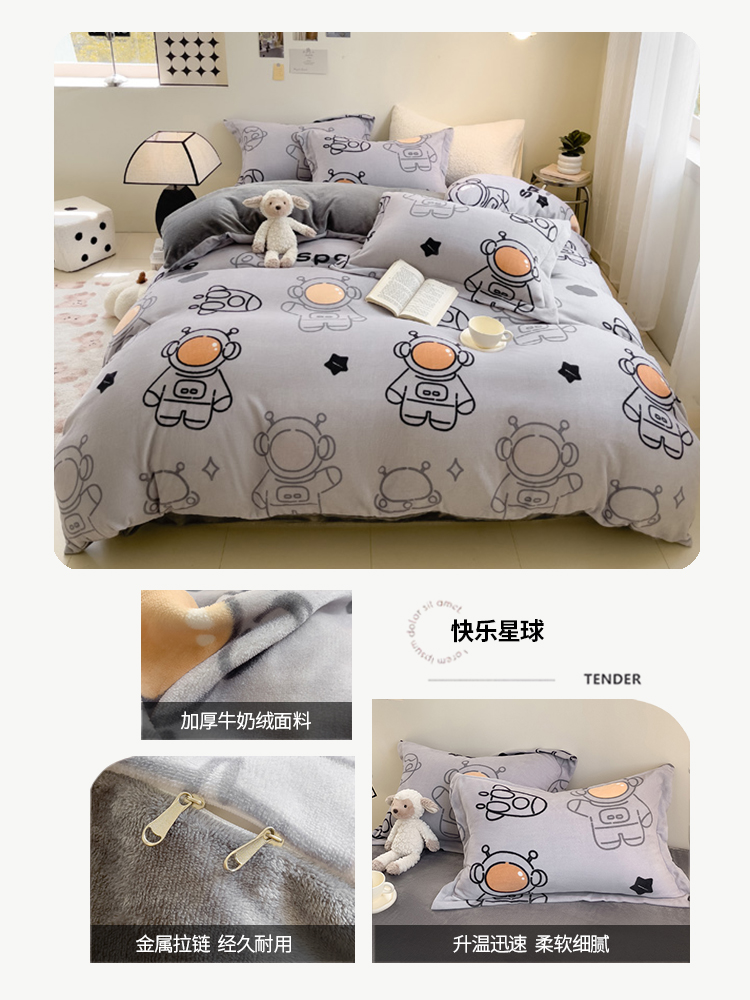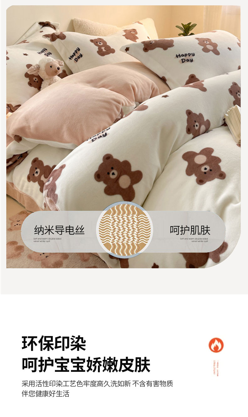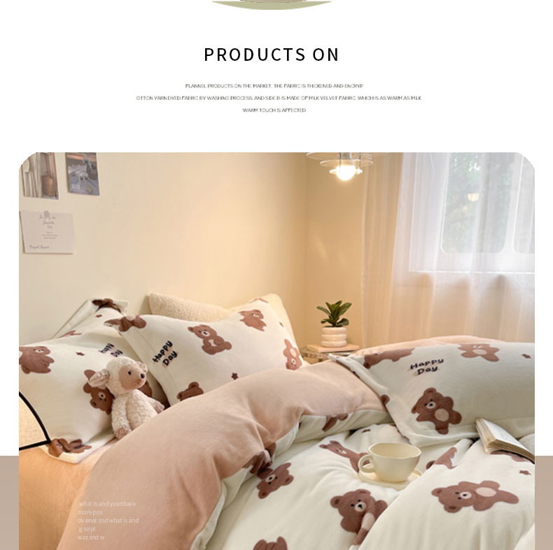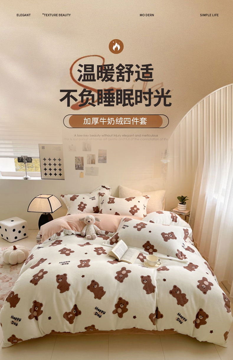 当前位置: 91家纺网 > 商品网购 > 床品套件 > 四件套 > 牛奶绒四件套 > 宅部落 2025新款高克重牛奶绒四件套法莱绒三件套单被套 小棕熊
