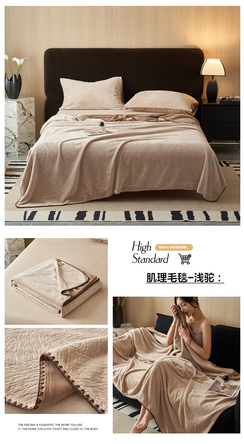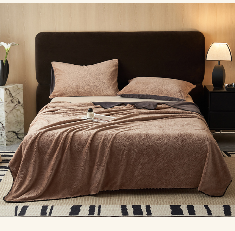 寐绸家纺 2025新款230g牛奶绒肌理感雕花毛毯 肌理毛毯-浅灰