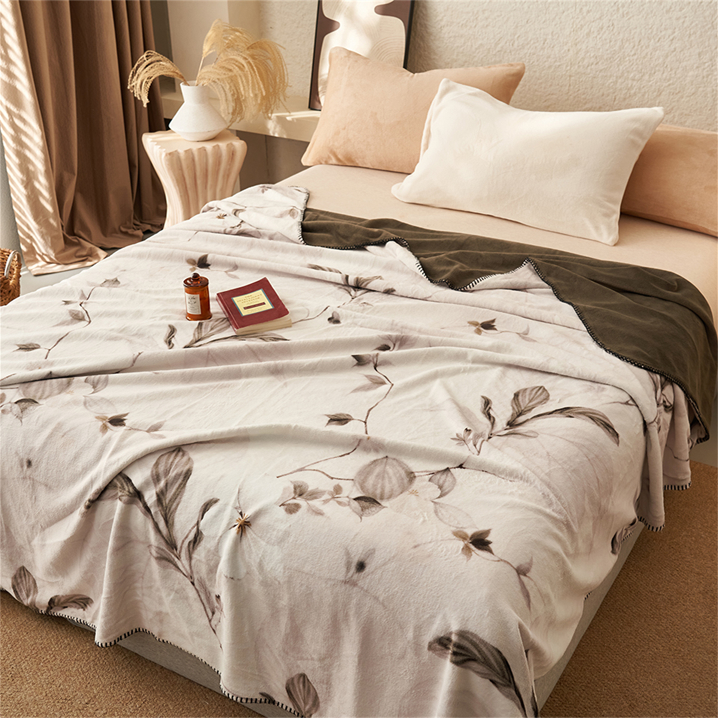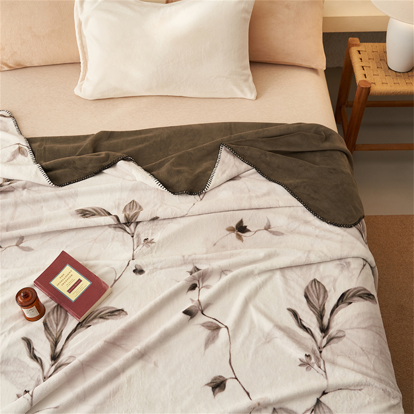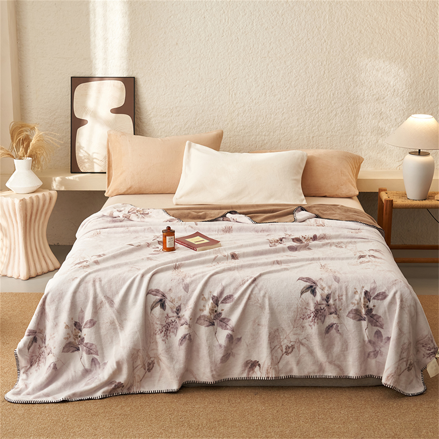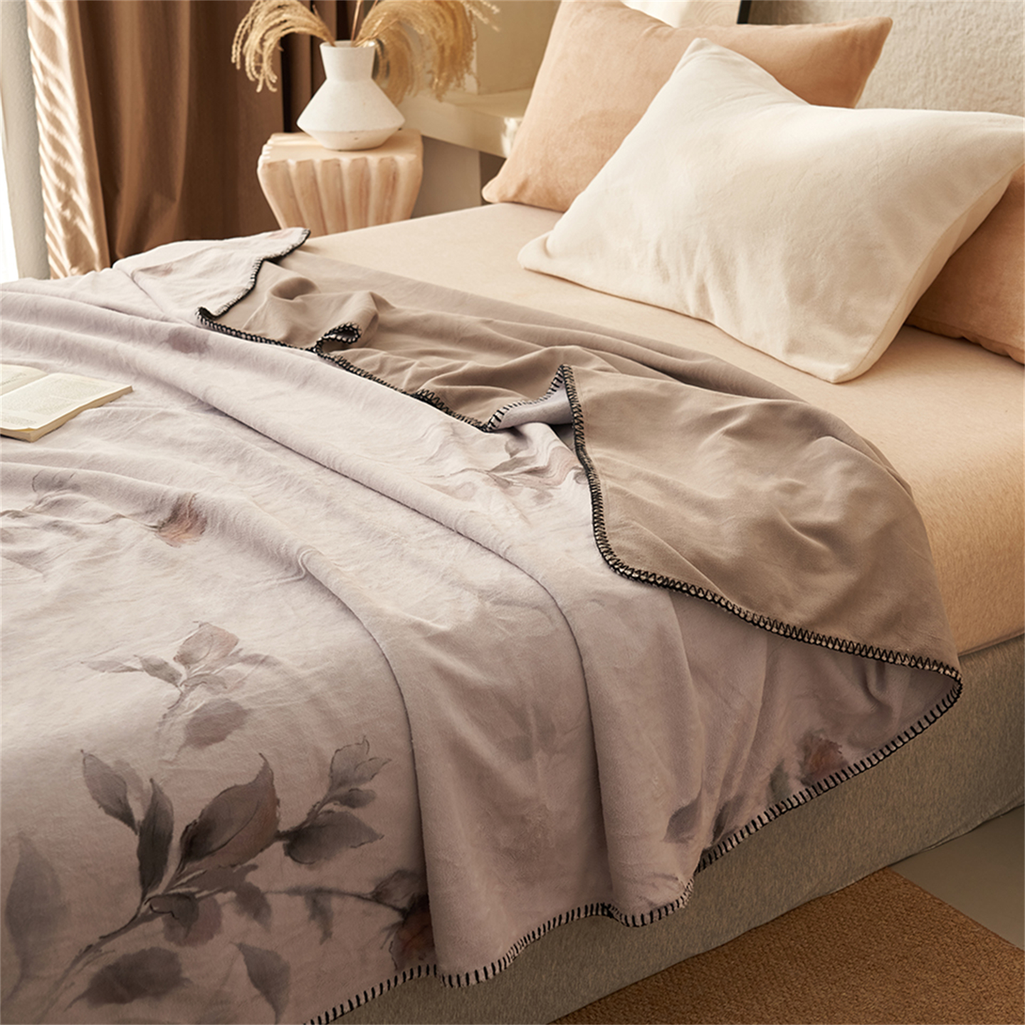 商品名称:寐绸家纺 2025新款棉麻风数码印花牛奶绒毛毯 棉麻风毛毯-雅梦