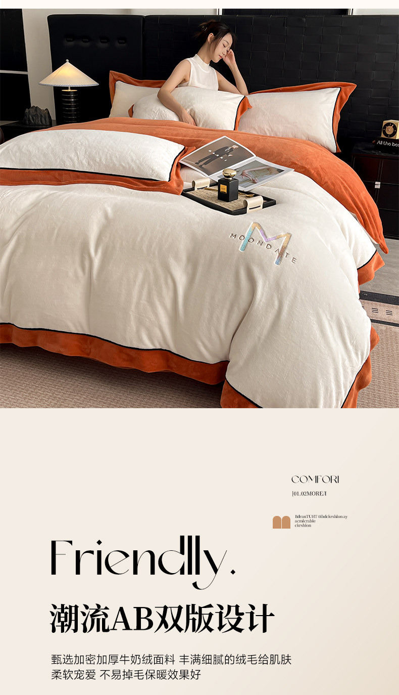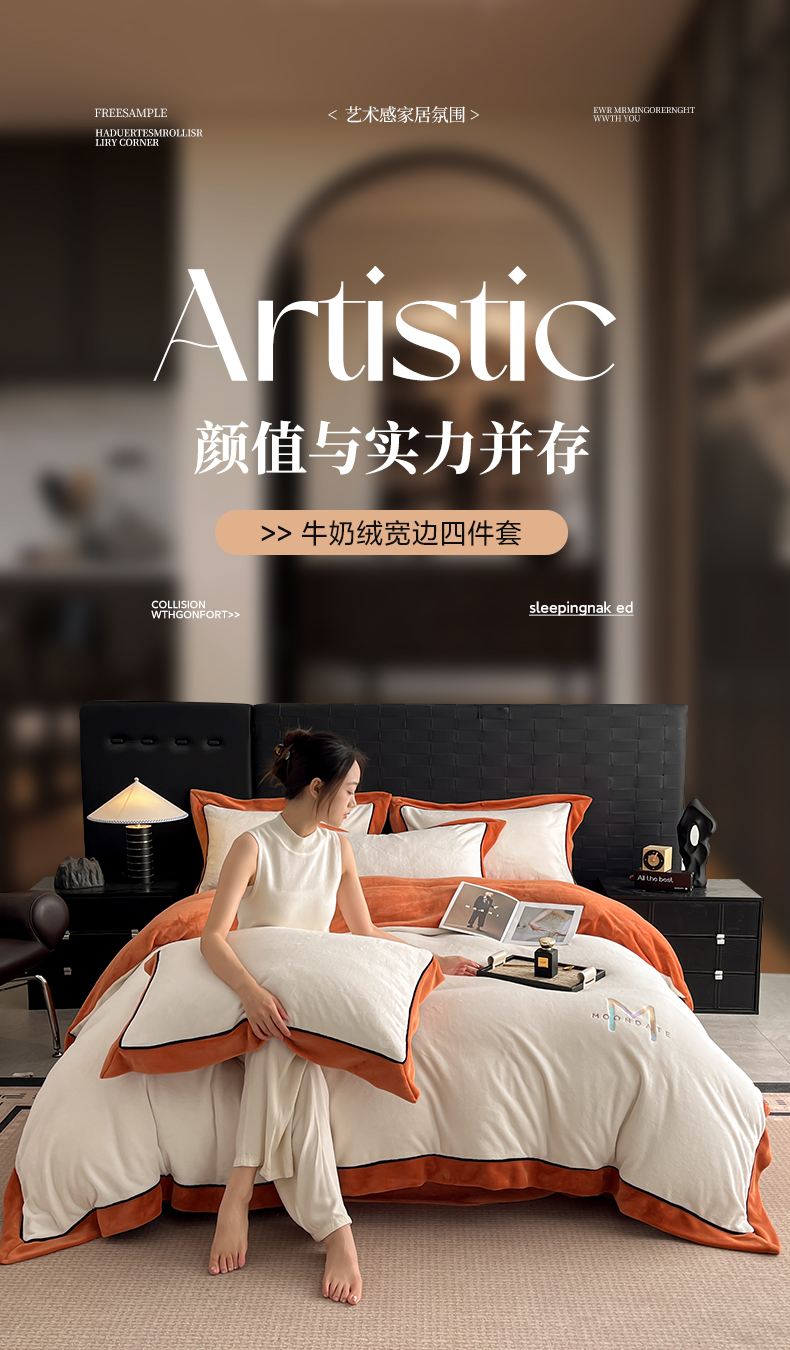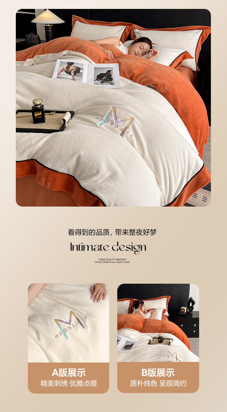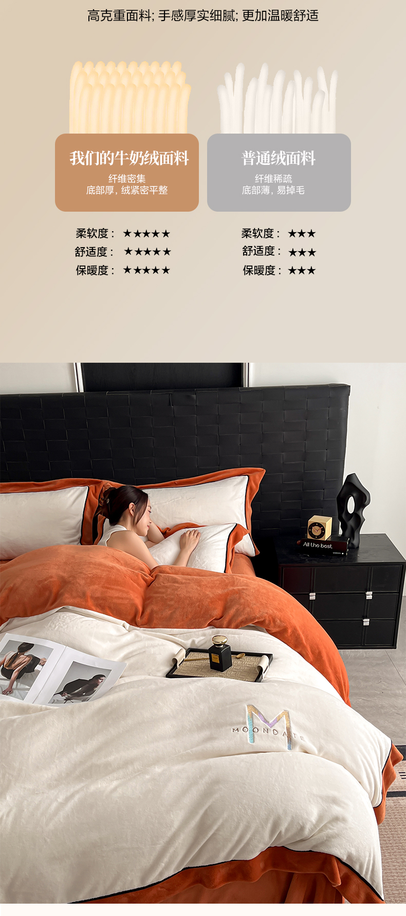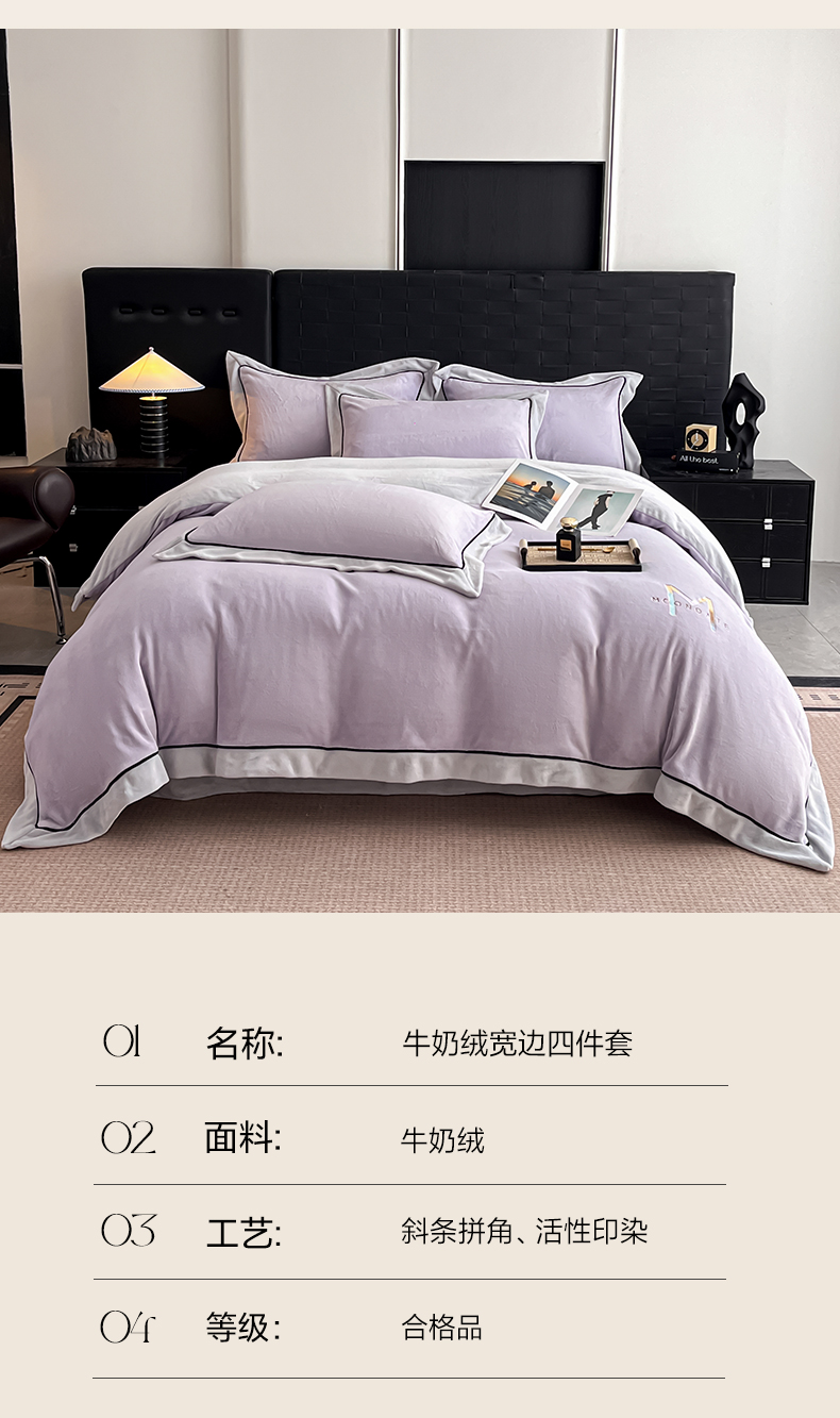 (总)遇见家居生活馆 2025新款A类牛奶绒玛利亚绒宽边四件套(控价:标准178,加大188,床笠款183),靓粉+星辰灰,丁香紫+星辰灰,清澈蓝+星辰灰,奶昔白+亚麻驼,经典灰+香槟,宾利蓝+星辰灰