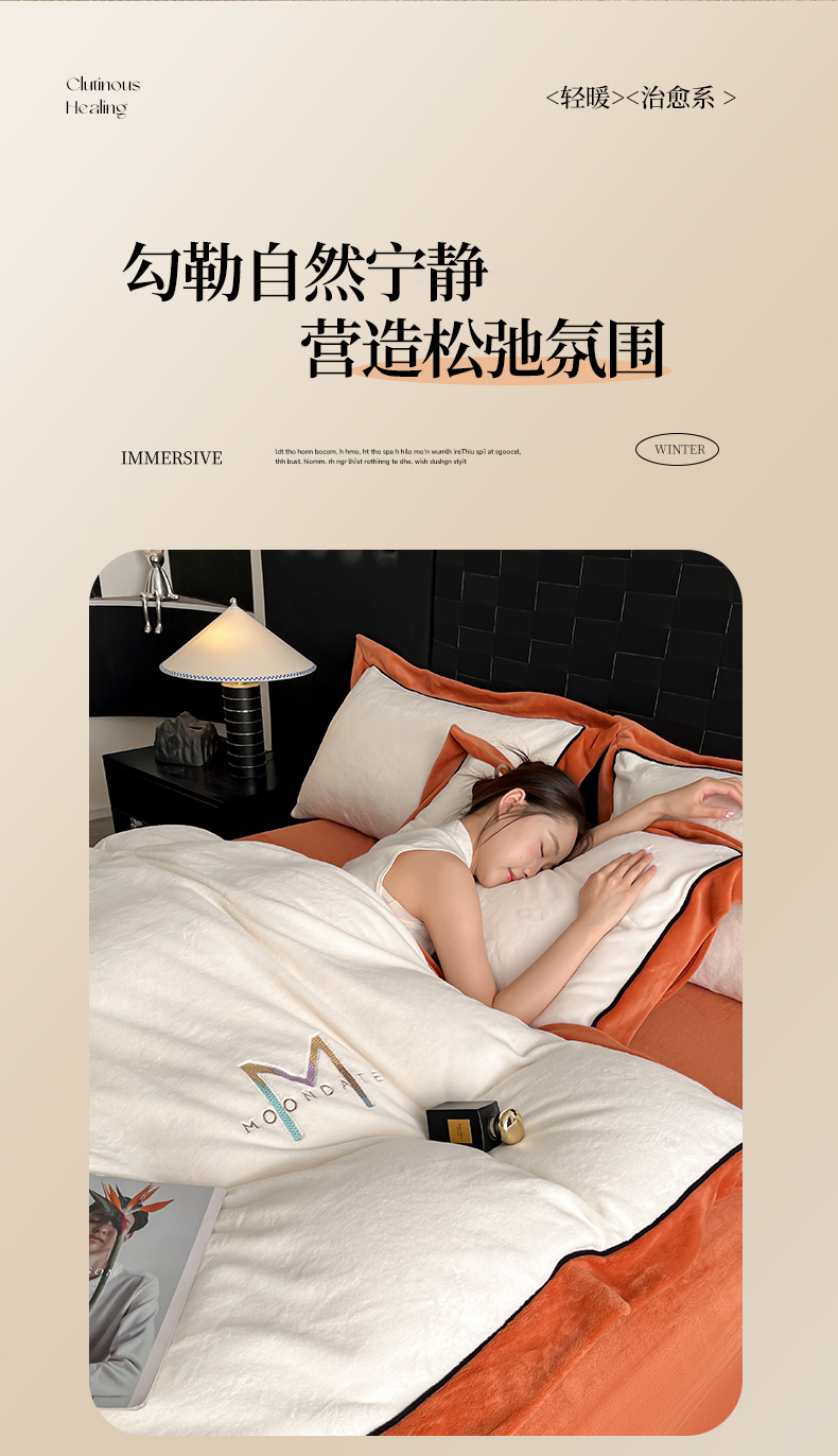 遇见家居生活馆 2025新款A类牛奶绒玛利亚绒宽边四件套(控价:标准178,加大188,床笠款183) 奶昔白+亚麻驼