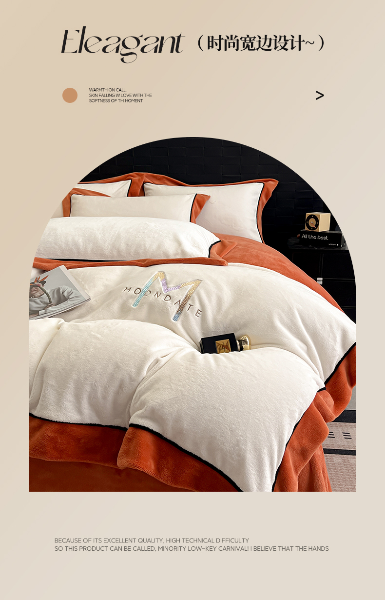 商品名称:遇见家居生活馆 2025新款A类牛奶绒玛利亚绒宽边四件套(控价:标准178,加大188,床笠款183) 奶昔白+亚麻驼