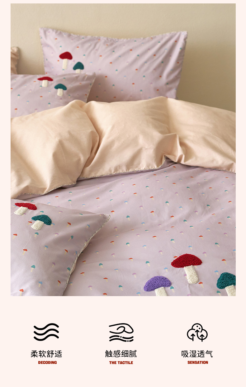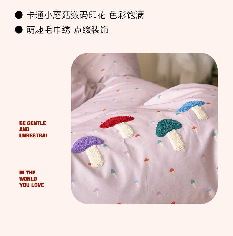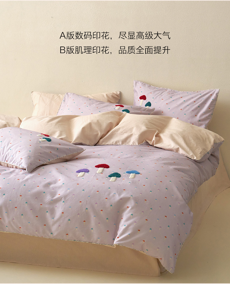当前位置: 91家纺网 > 商品网购 > 床品套件 > 四件套 > 全棉普通四件套 > 久典家居 2025新款全棉加厚磨毛数码印花毛巾绣四件套(买家秀找客服) 蘑菇紫