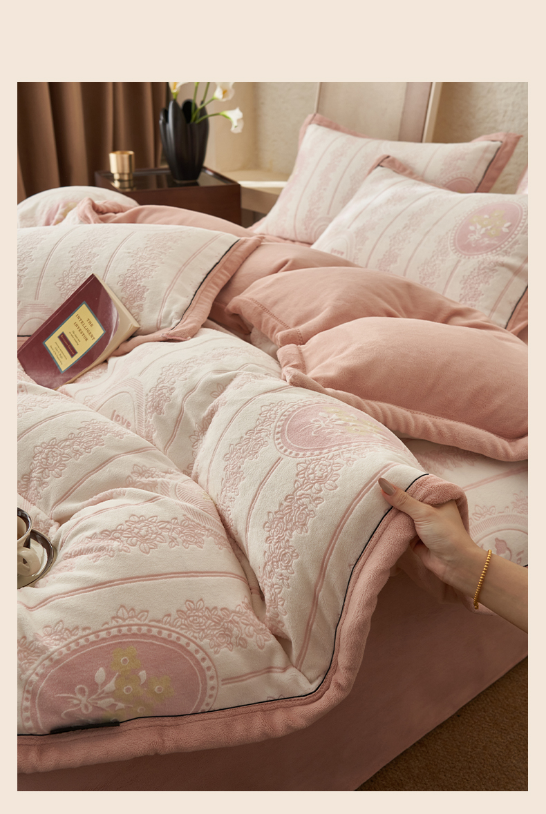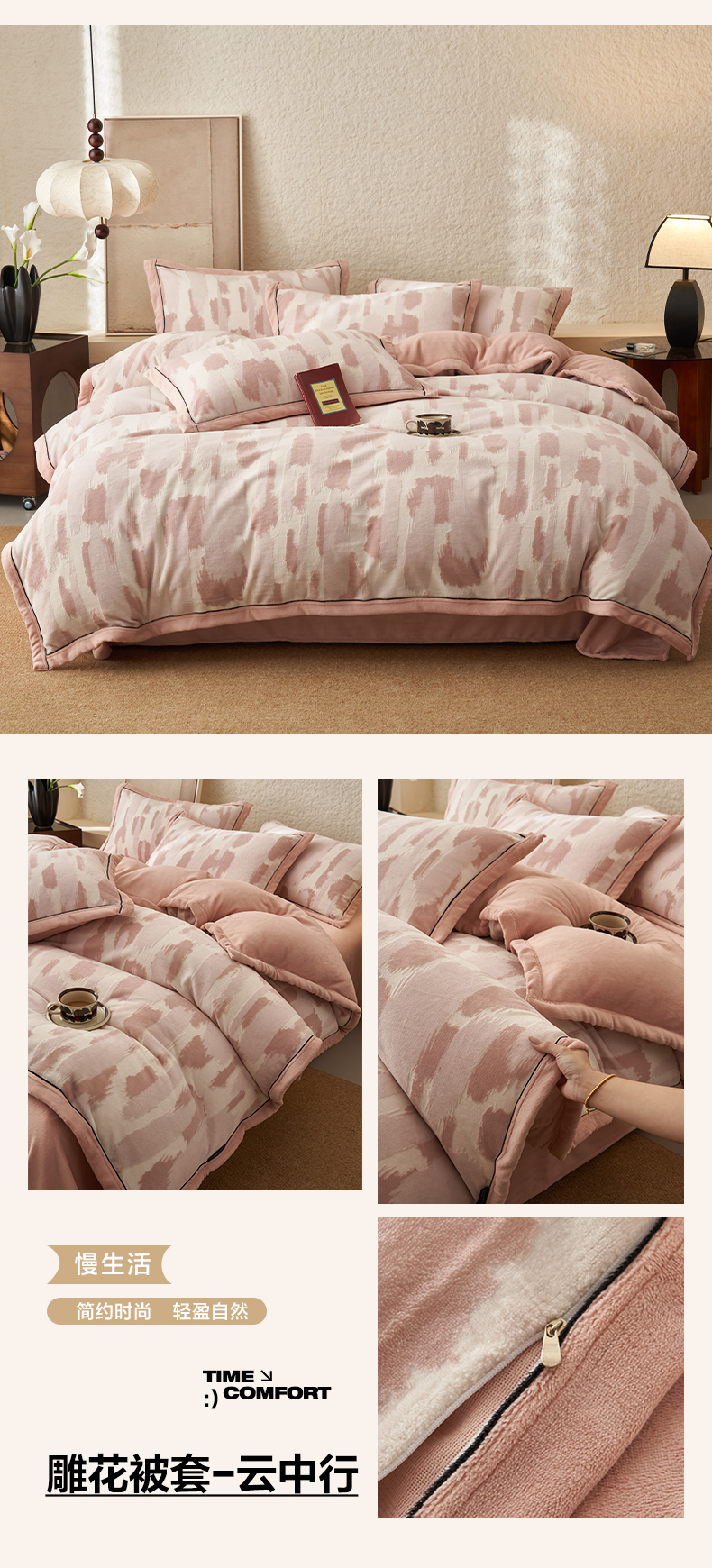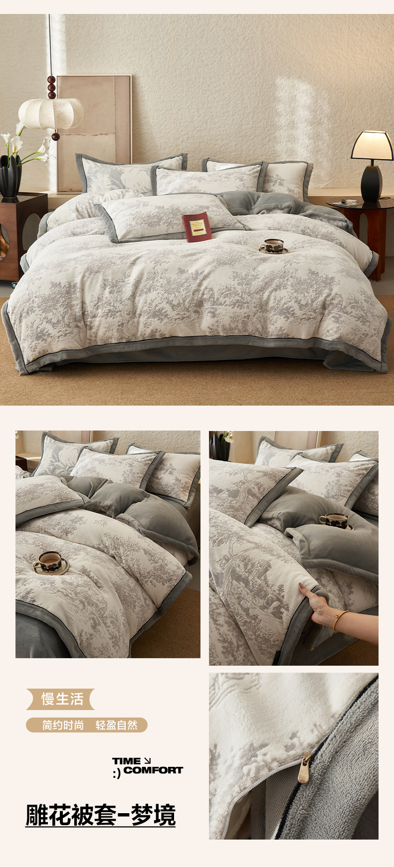 • 91家纺网 家纺一手货源 找家纺 寐绸家纺 2025新款牛奶绒染色雕花单被套 雕花被套-花境