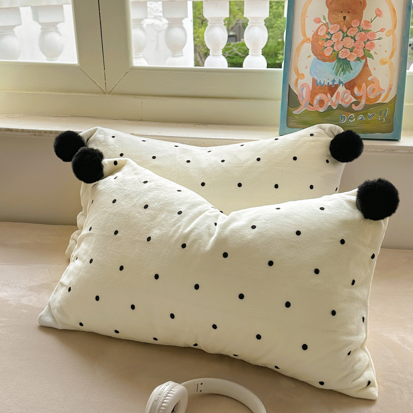 商品名称:丽涵家纺 2025新品全工艺牛奶绒印花枕套-波点球球款 波点-奶白