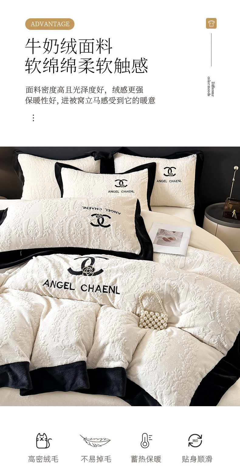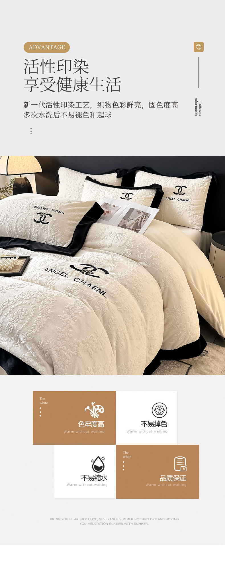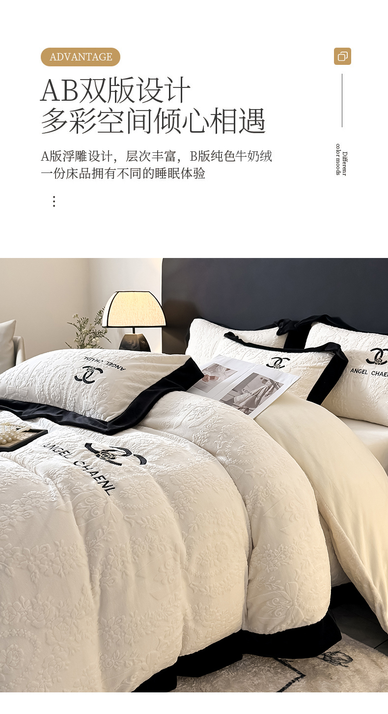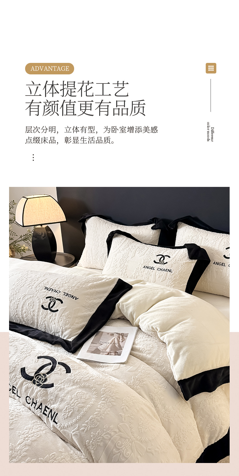(总)KA家纺 2025新款秋冬兔毛边工艺款兔毛牛奶绒四件套,豹闪闪,蝶飞飞,红彤彤,花满满,洛可可,情浓浓,心乱乱