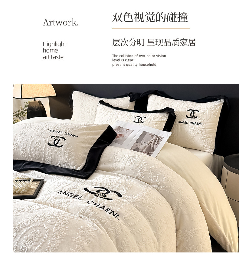KA家纺 2025冬季高克重绣花雕花牛奶绒四件套 相约奶昔白