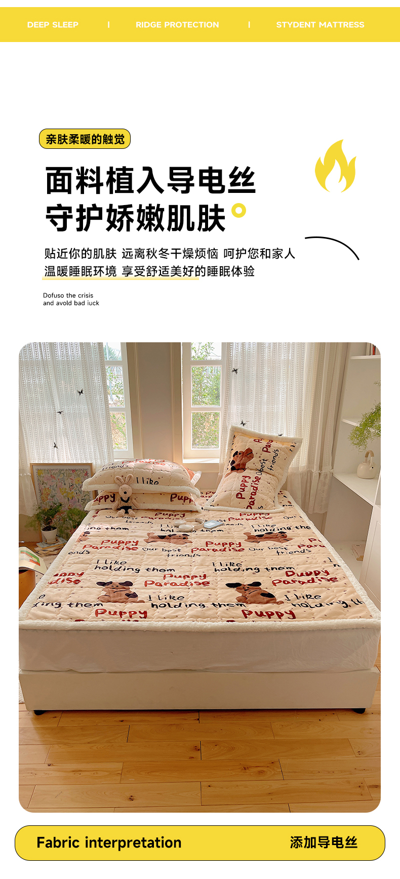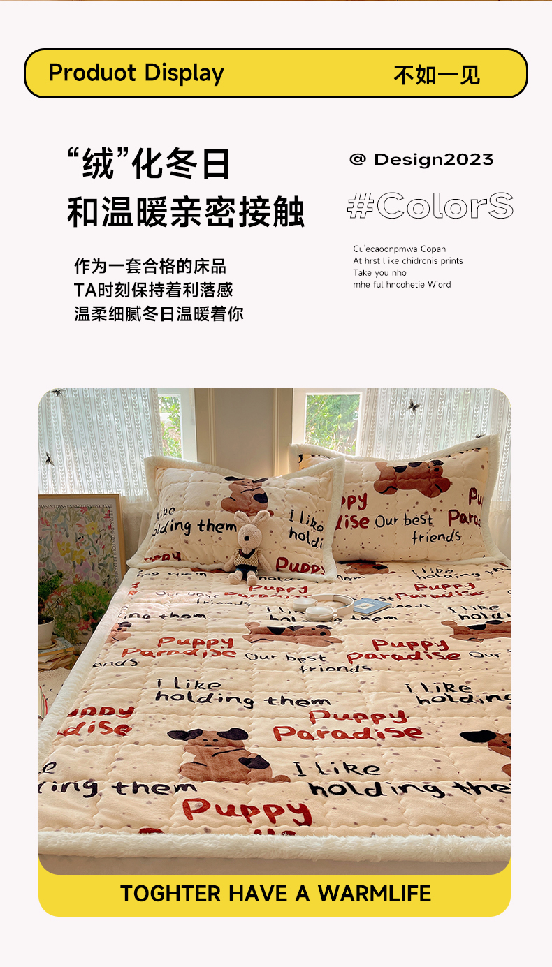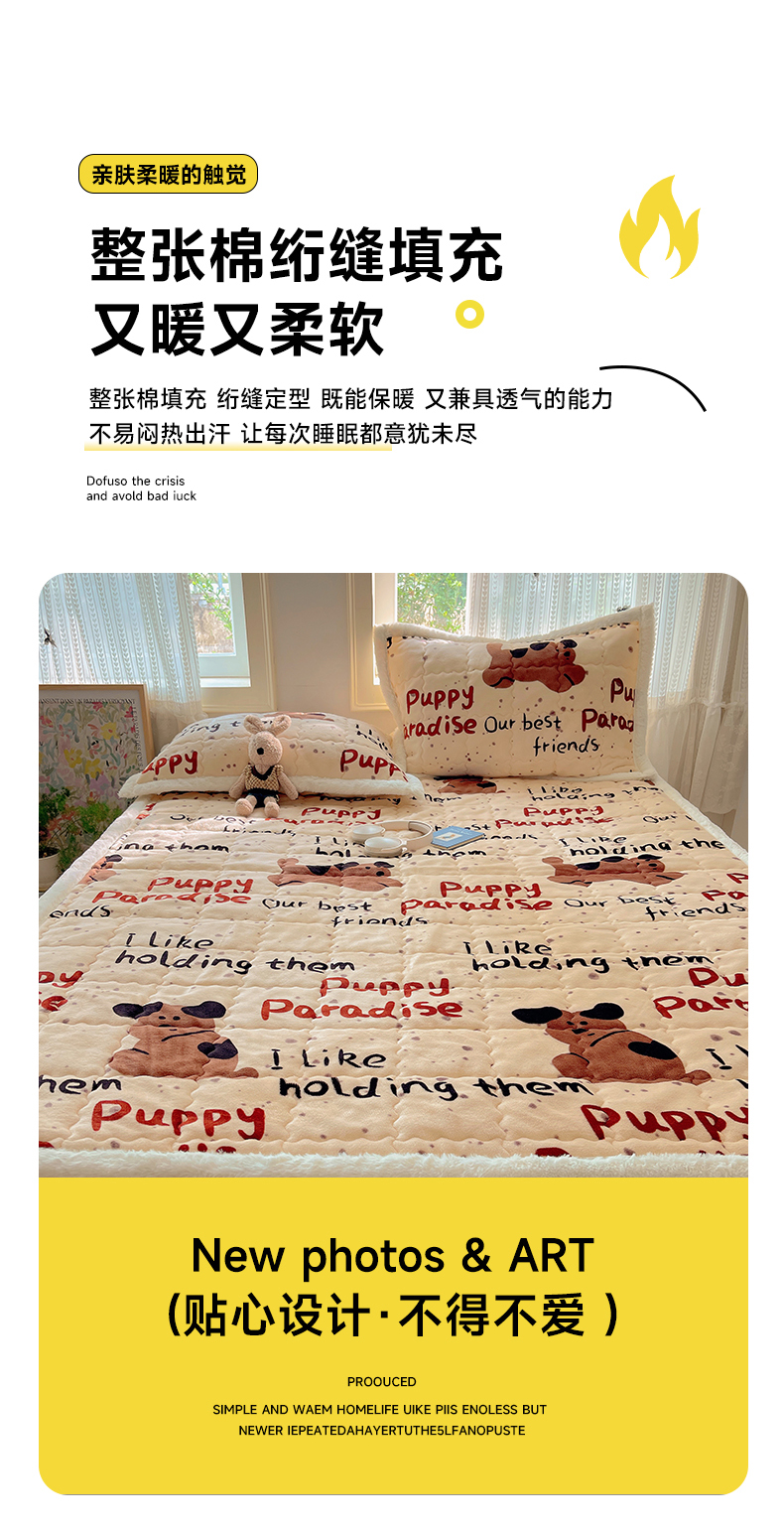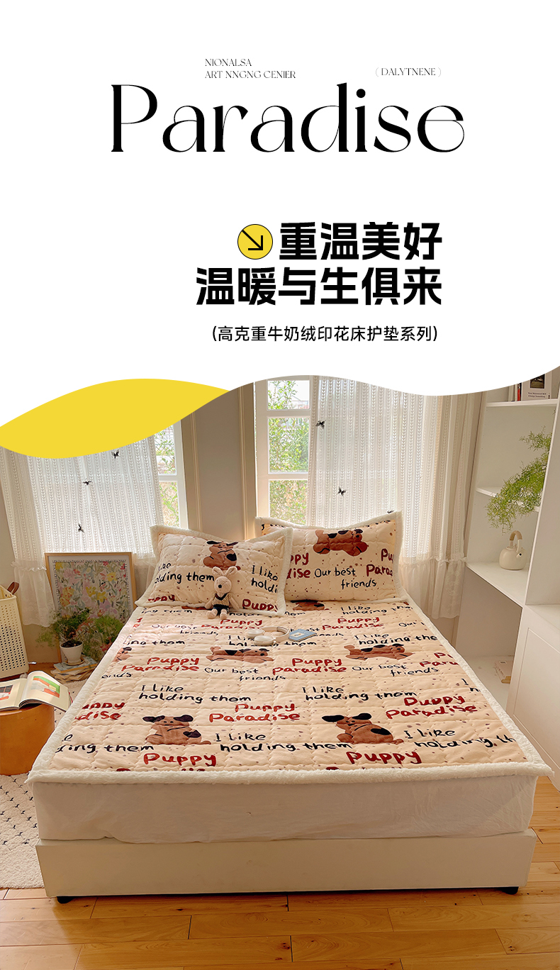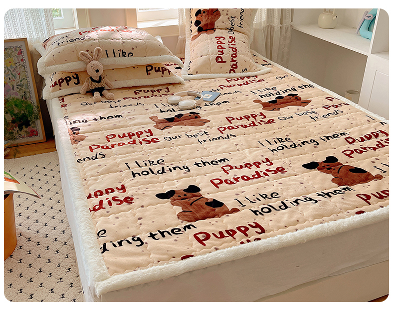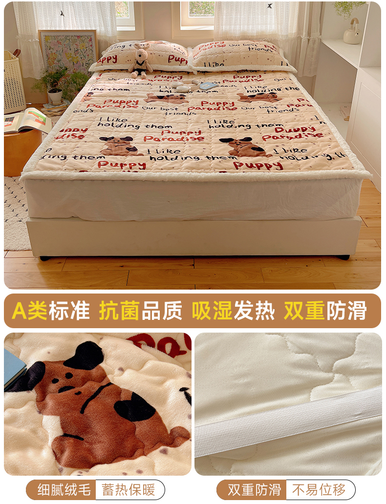 商品名称:红嘴企鹅 2025新款高克重牛奶绒印花床护垫床褥 淘气狗