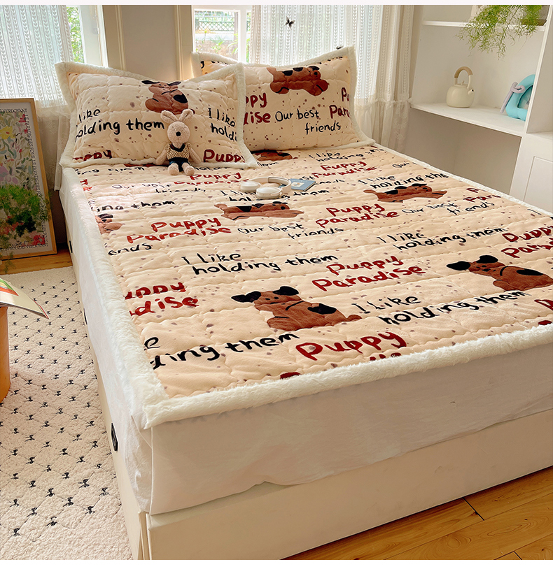 红嘴企鹅 2025新款高克重牛奶绒印花床护垫床褥 淘气狗