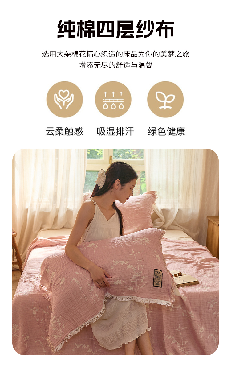 (总)沐瑟家纺 2025新款简约风多功能纱布盖毯纱布毯子毛巾被床盖沙发巾单毯枕巾枕套三件套,H本色,H橙色,H咖色,大马士革本色
