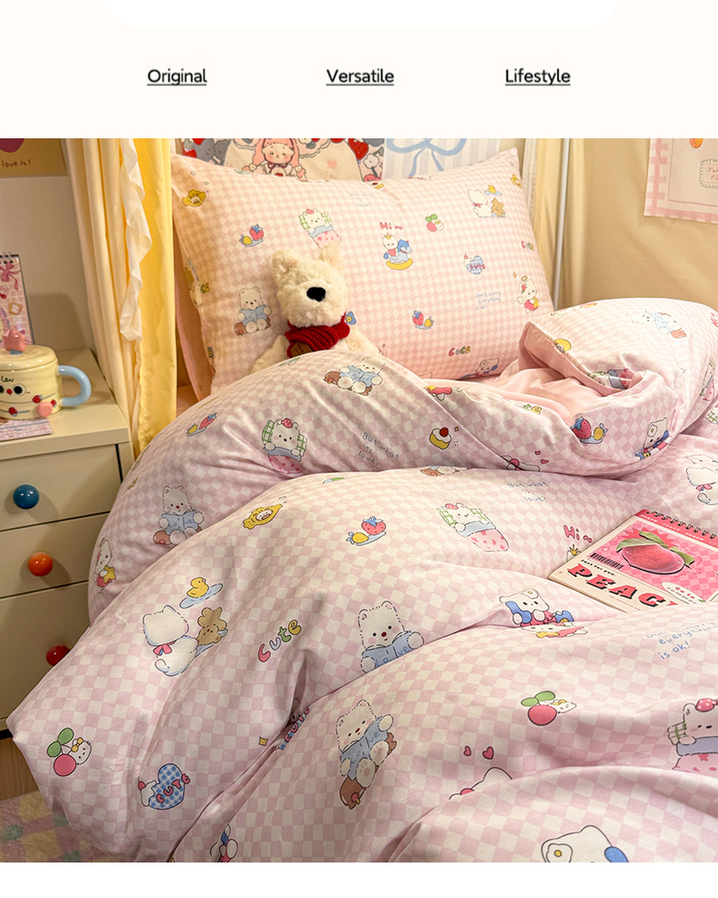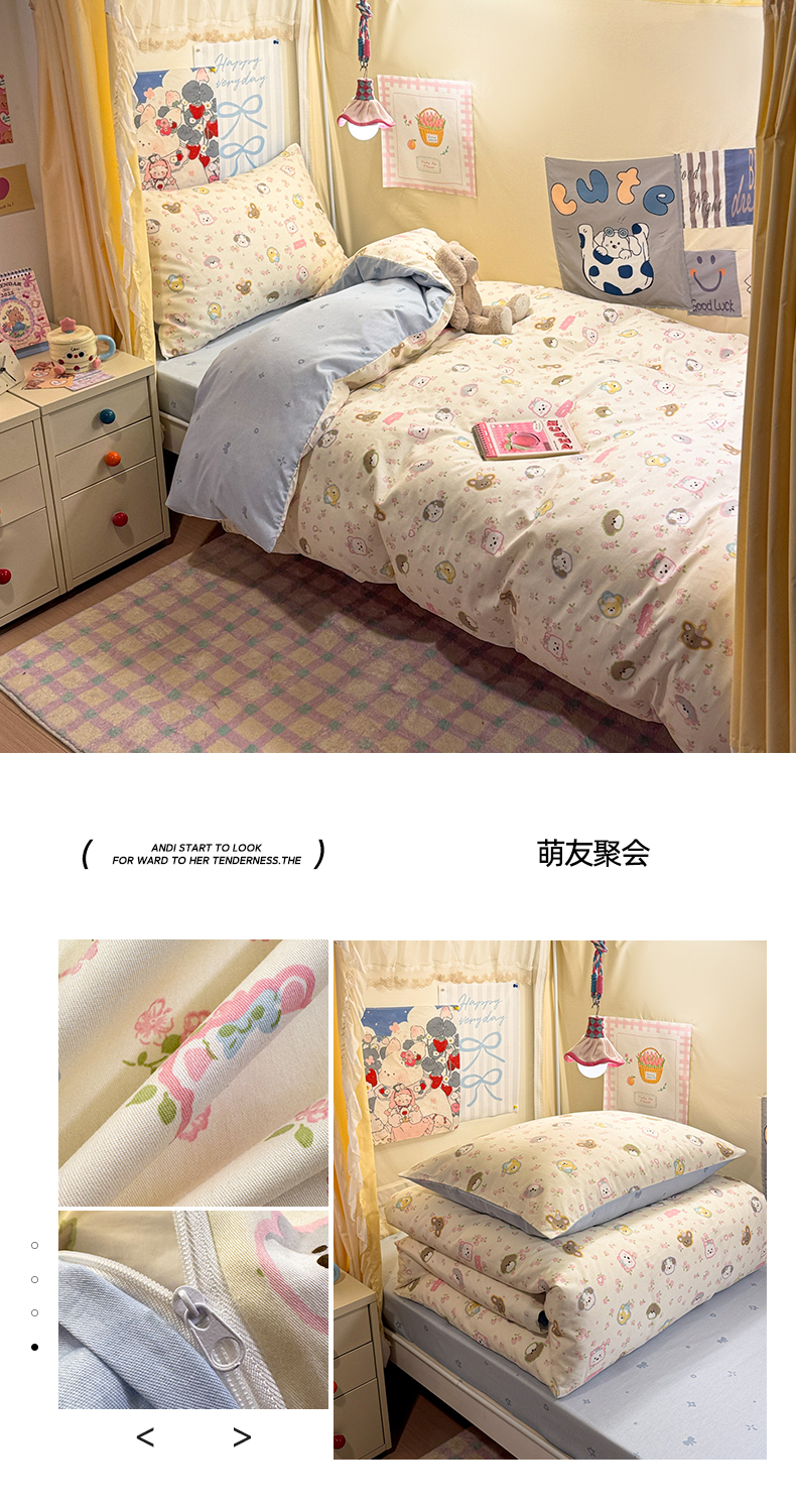 简宜2023新款13070纯棉全棉40支斜纹卡通小清新学生三件套四件套,花园兔,紫葡仙子,倩影粉,hello 萌熊,嘟嘟小车,简笔画,开心小黄鸭,梦幻城堡,浓情爱意
