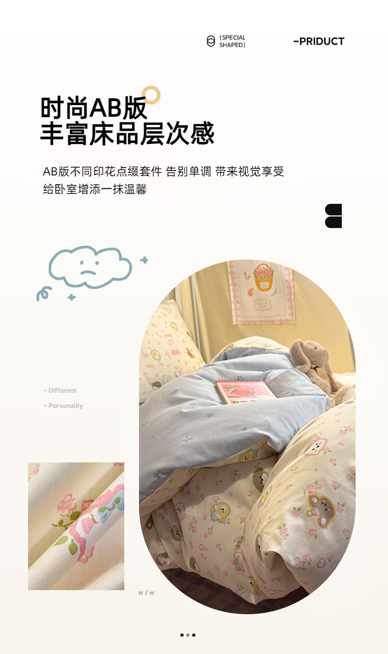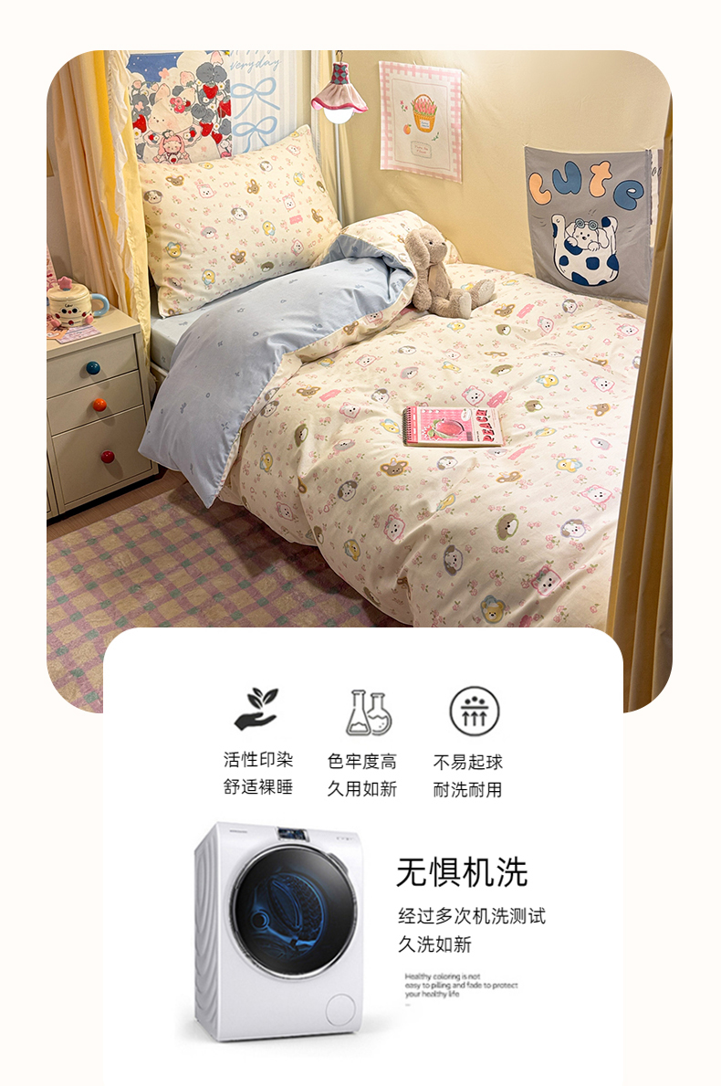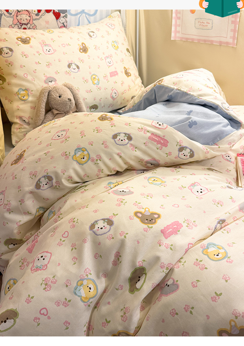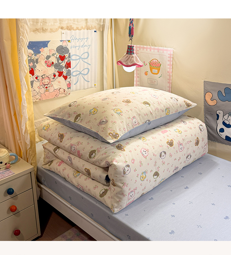 当前位置: 91家纺网 > 商品网购 > 床品套件 > 三件套 > 简宜家居(朝初家纺) 2025新款全棉12868斜纹卡通花卉学生三件套四件套 萌友聚会