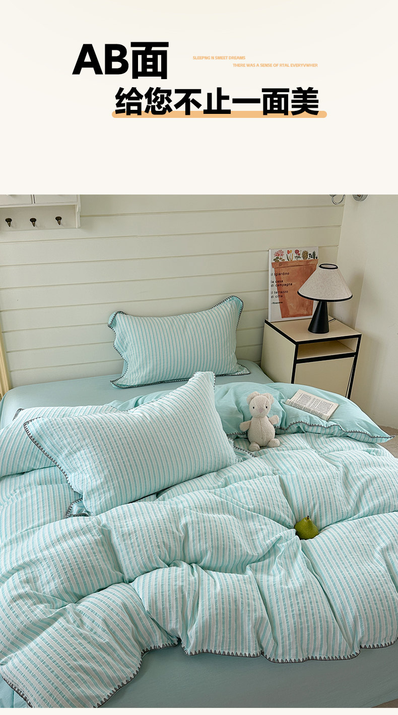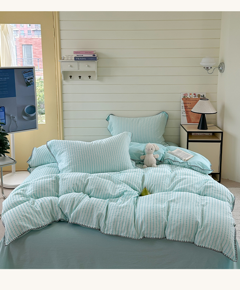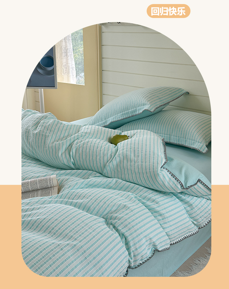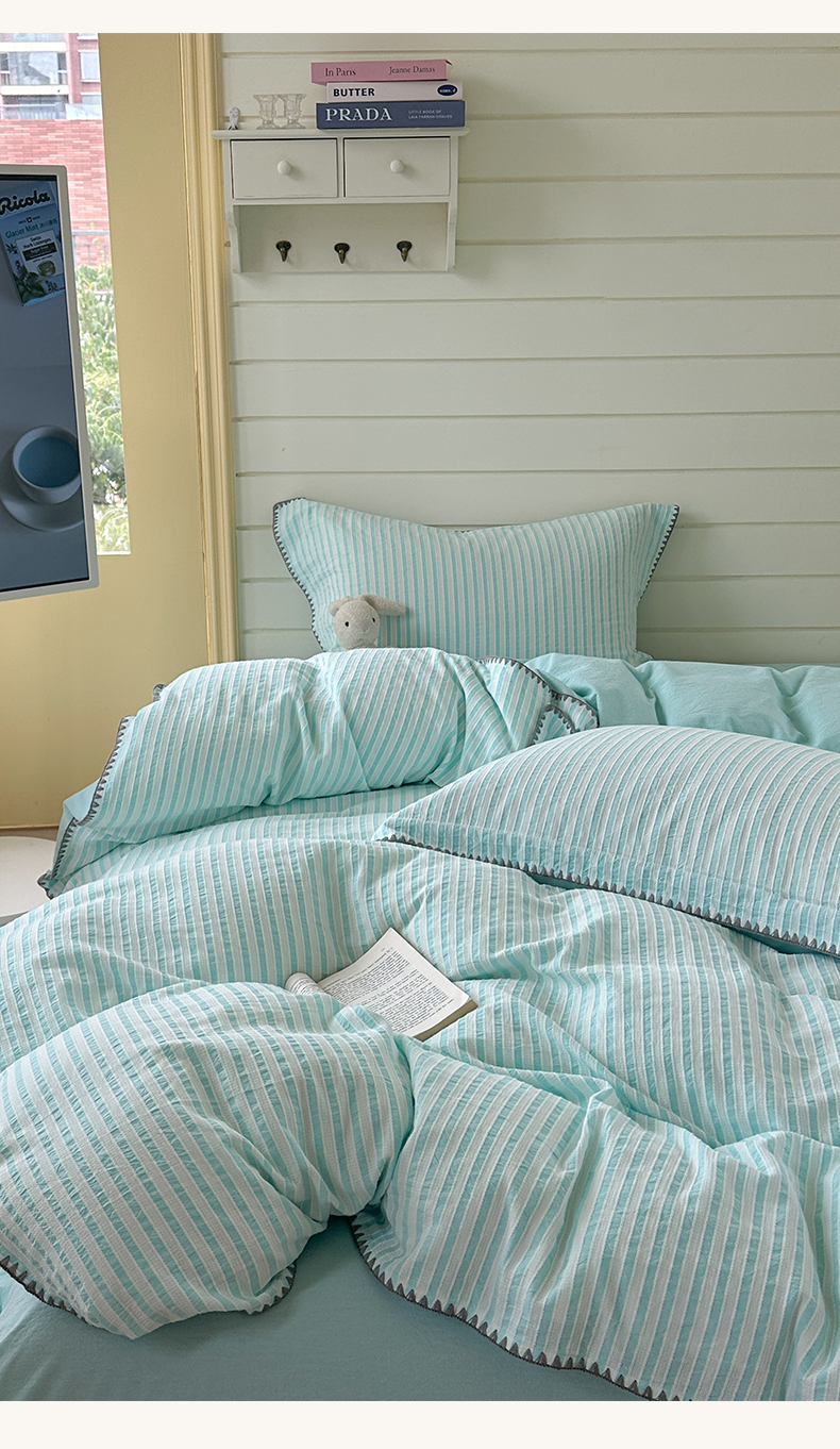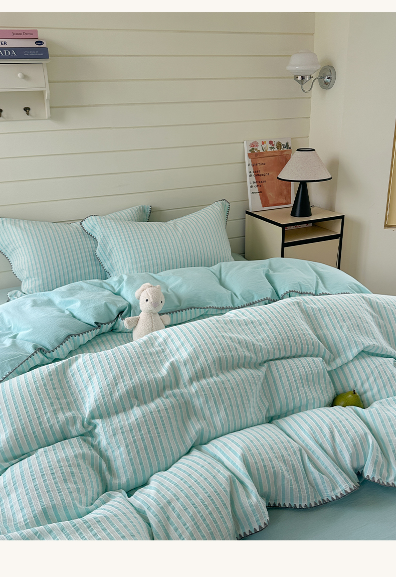 商品名称:琳可家居 2025新款色织全棉四件套-条纹系列 条纹-天青色