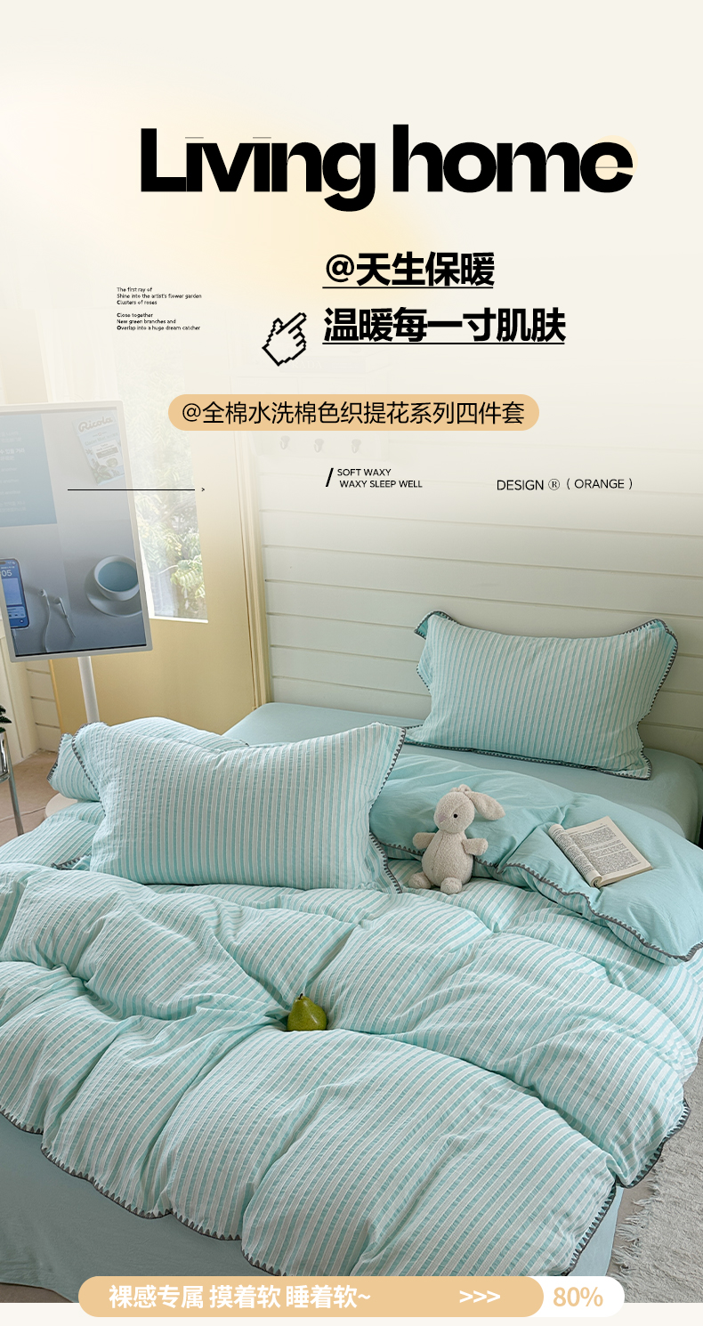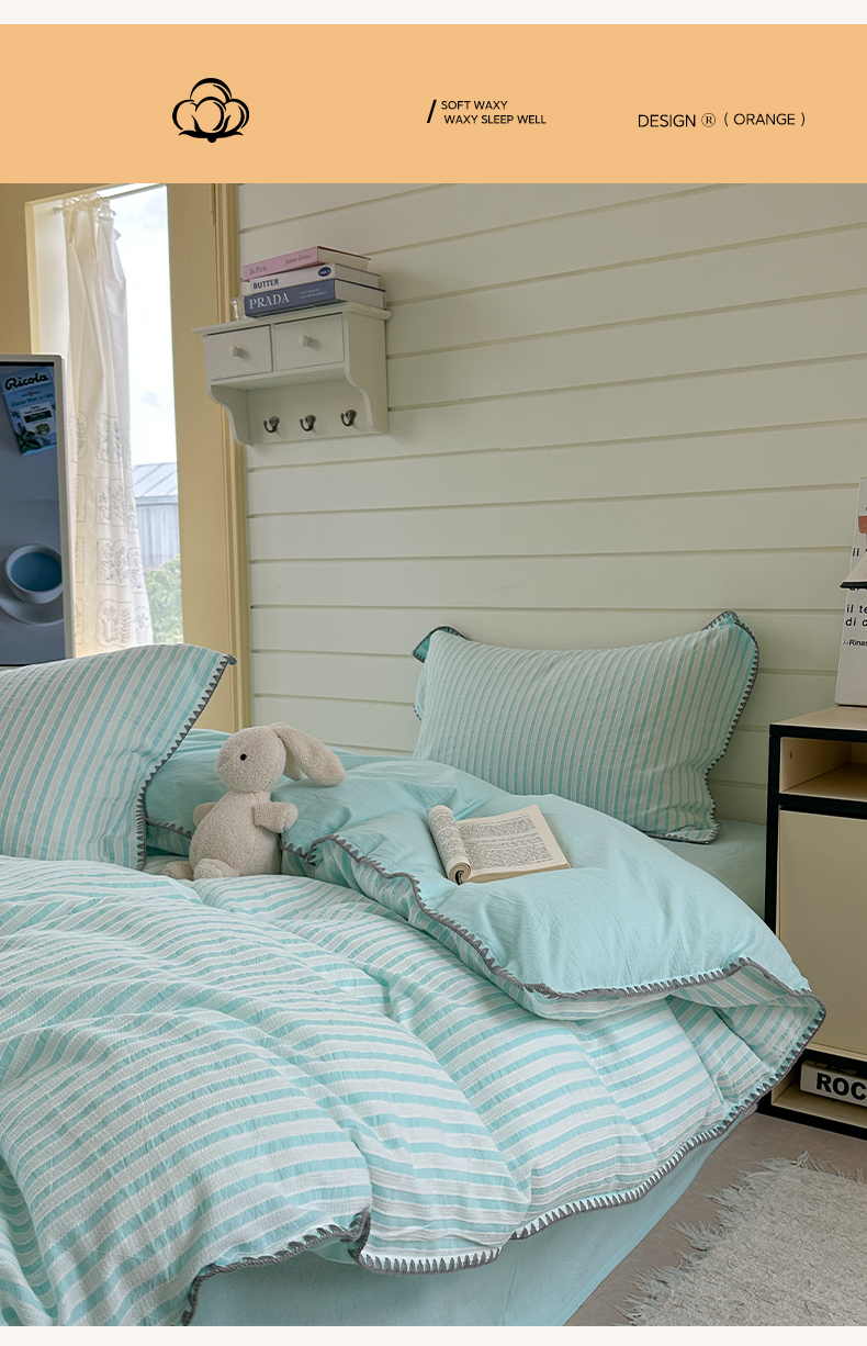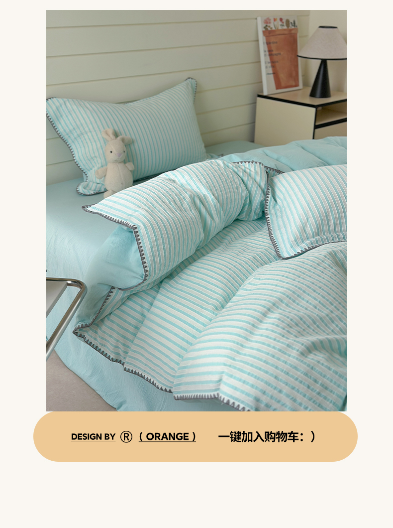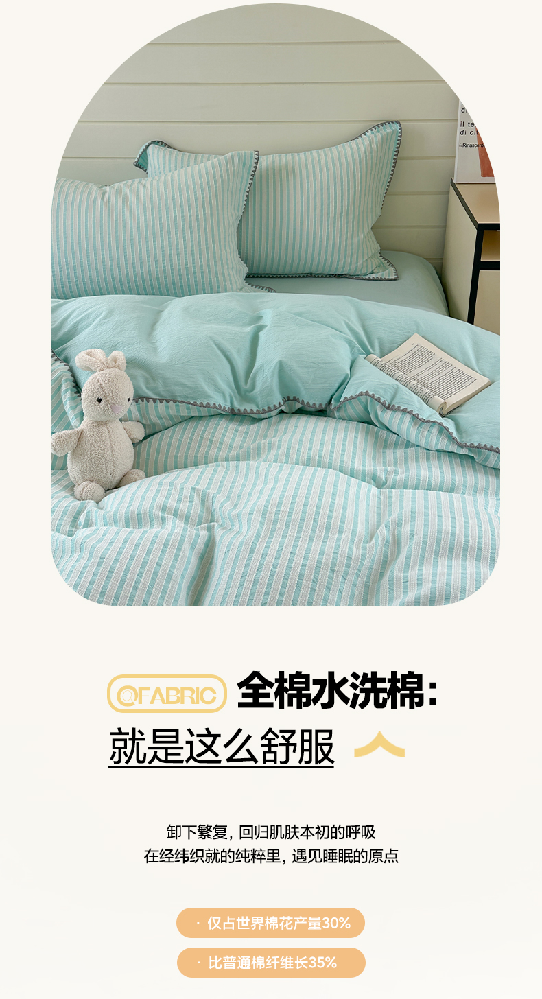 商品名称:琳可家居 2025新款色织全棉四件套-条纹系列 条纹-天青色