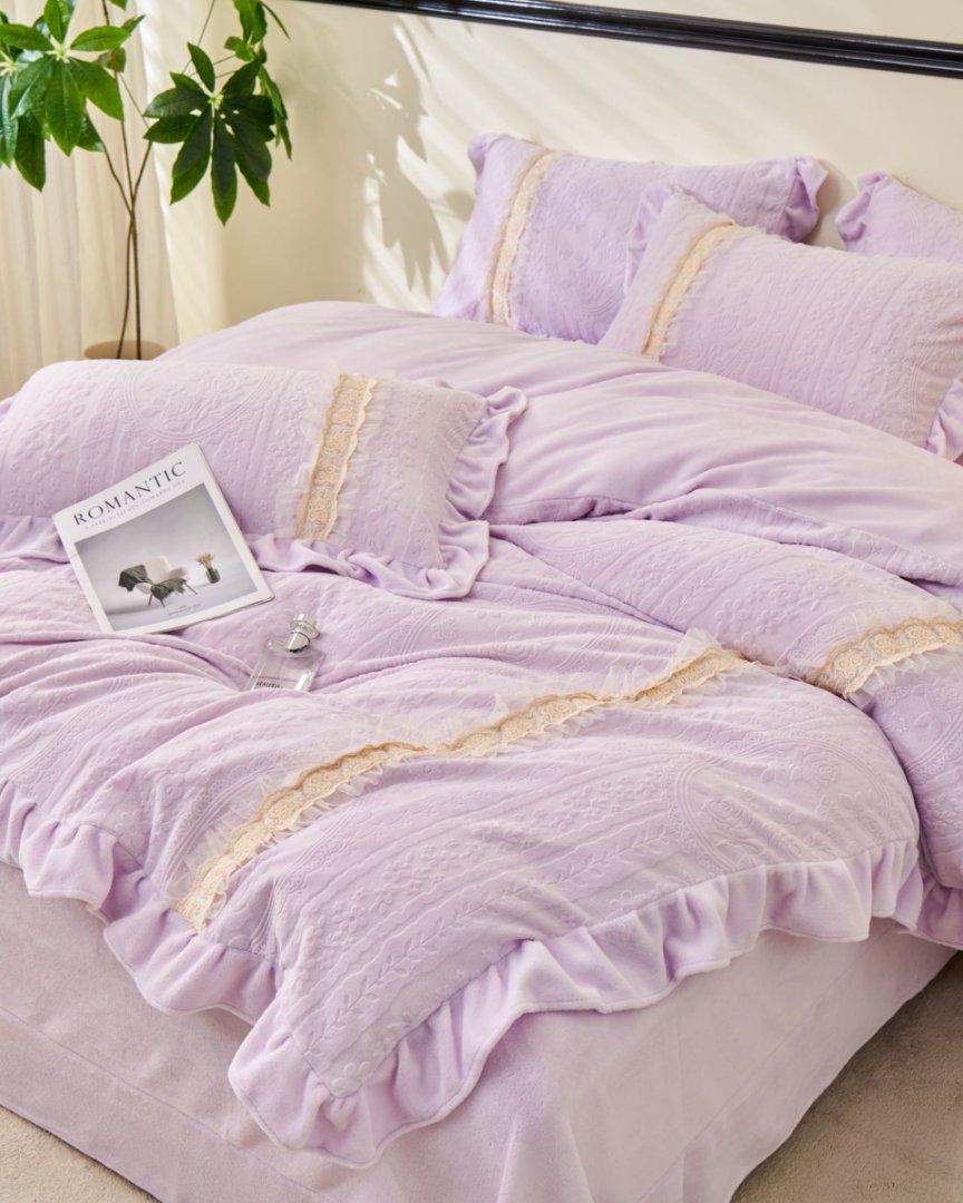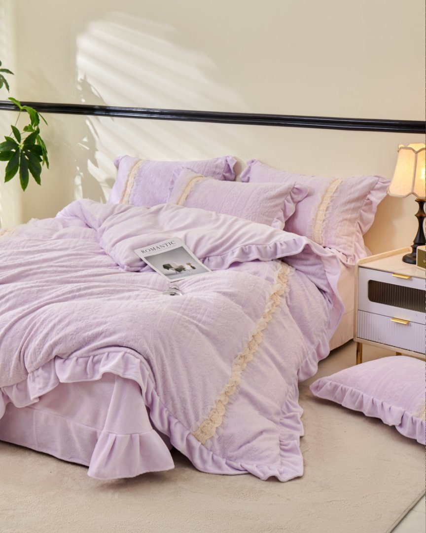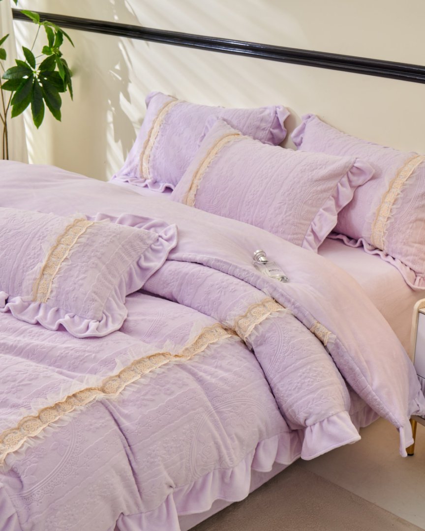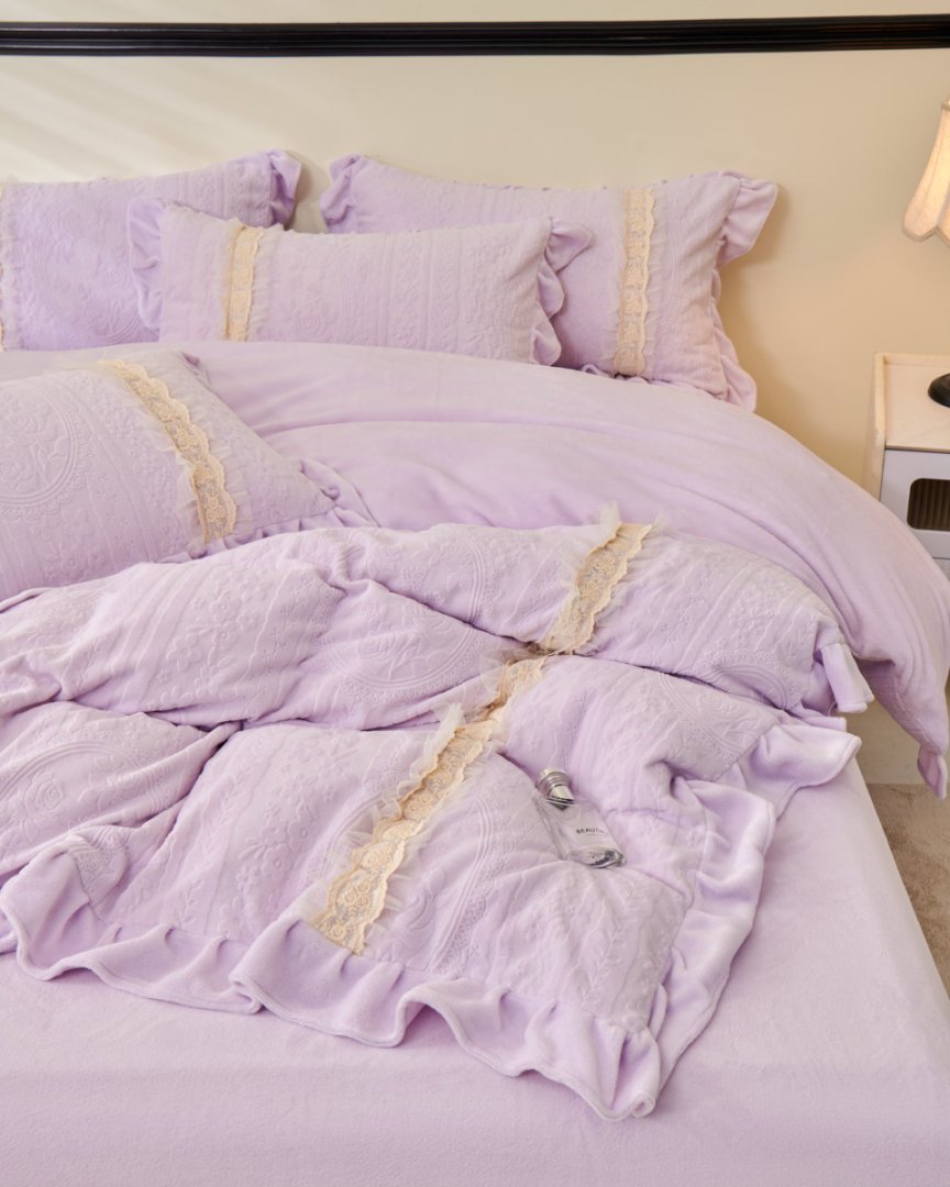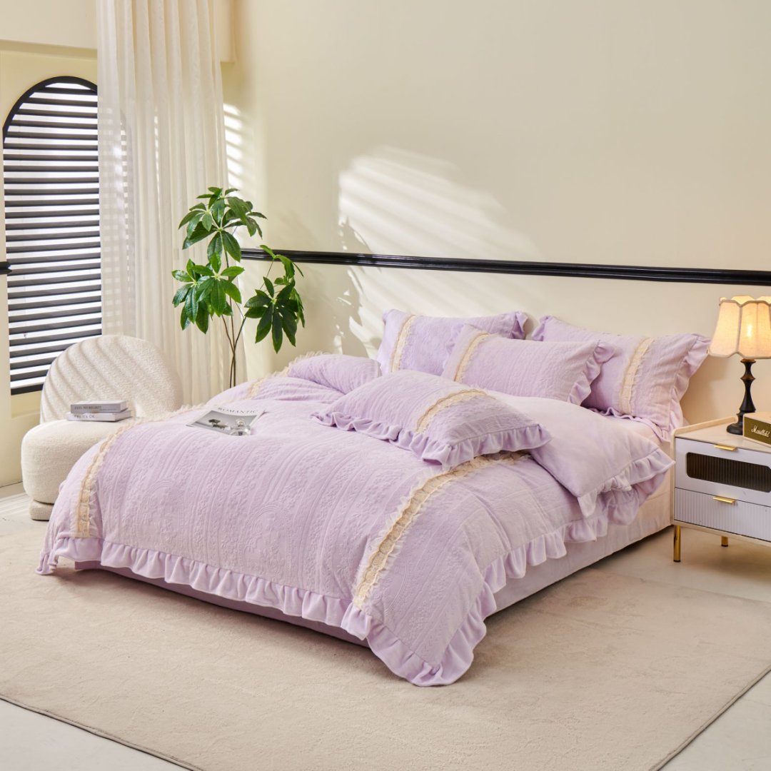 商品名称:七里香 2025新款雕花绒牛奶绒工艺款四件套-偏爱系列 偏爱-紫色