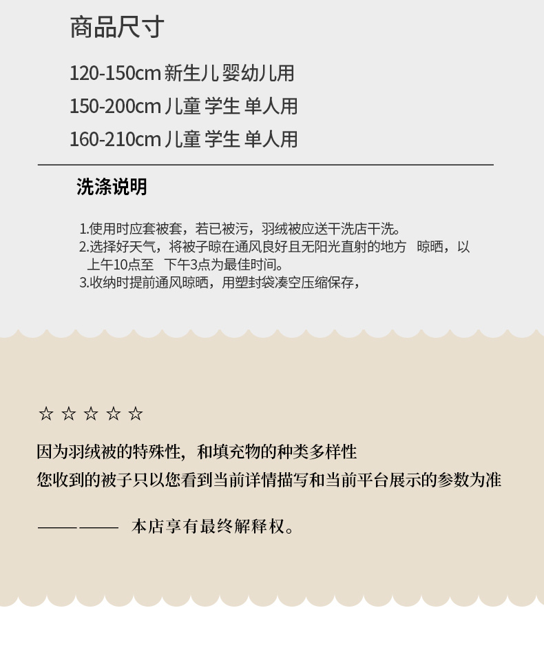 120-150cm 500克绒 特厚 | ¥799.00 |