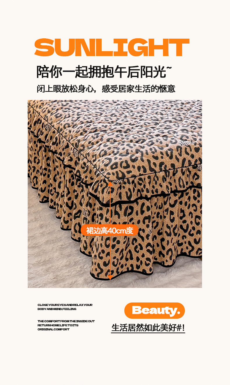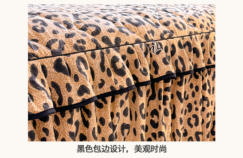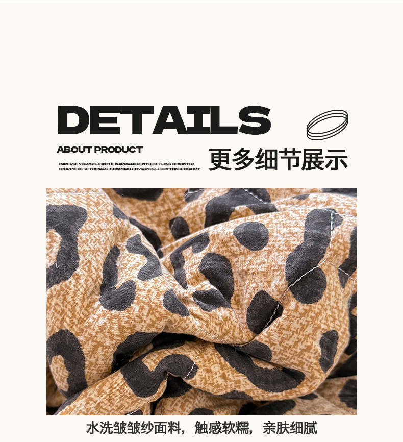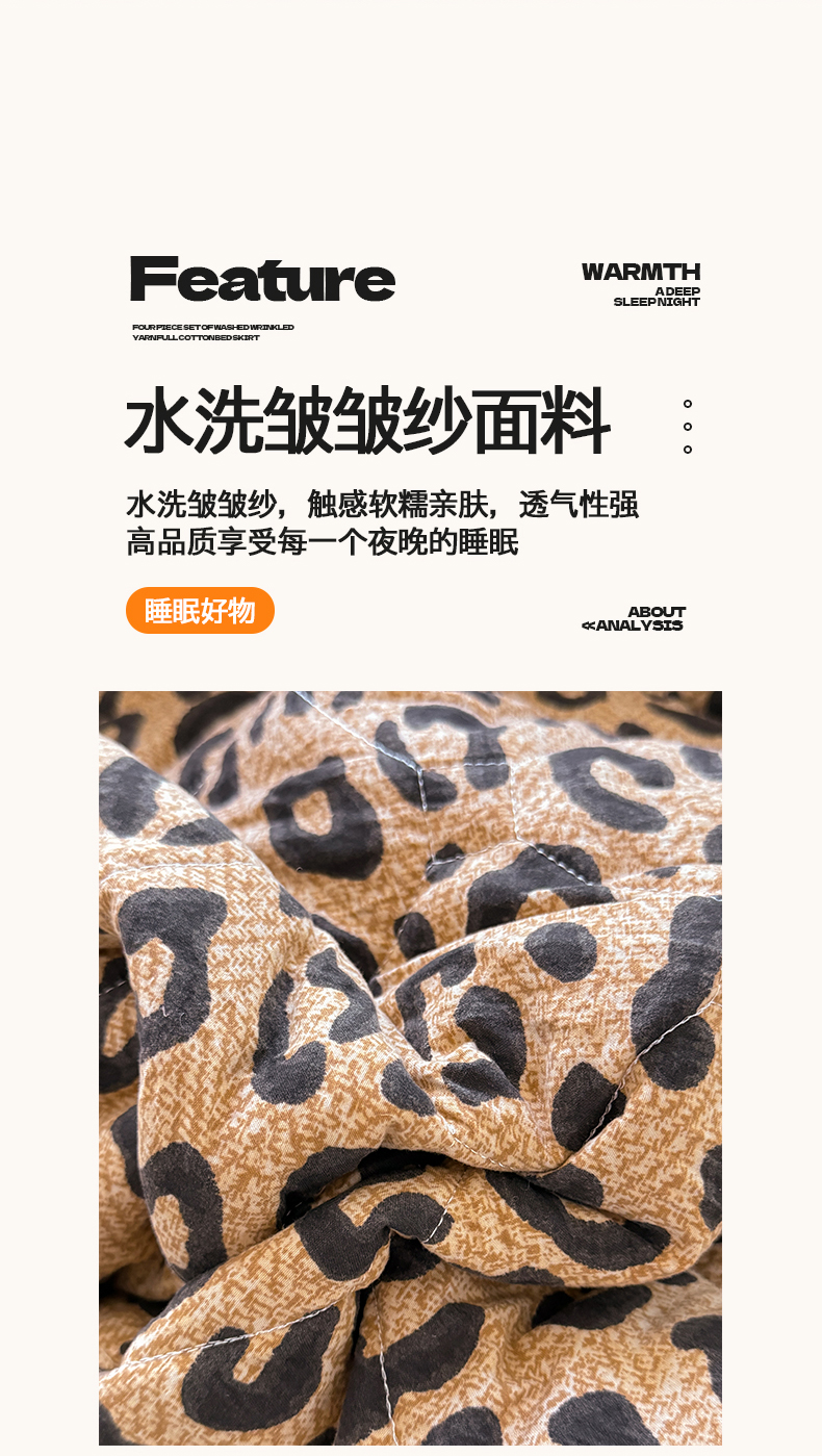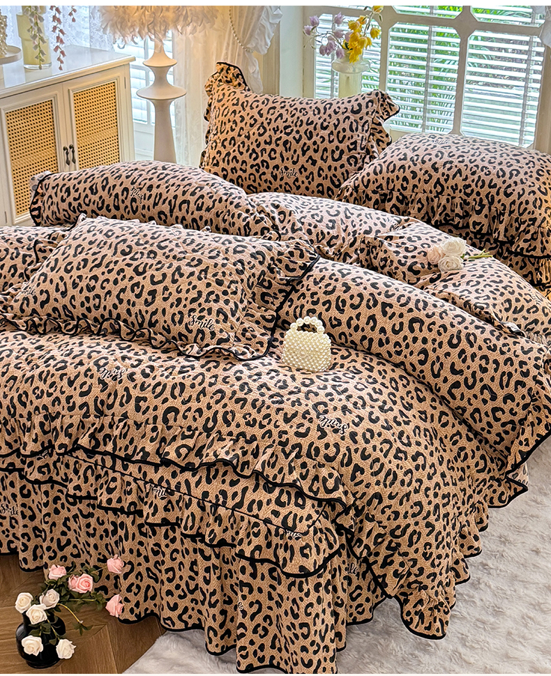 商品名称:优家居 2025新品水洗棉全夹棉床裙四件套韩版糯糯棉水洗皱皱纱床罩花边被套枕套直播爆款 豹纹-咖