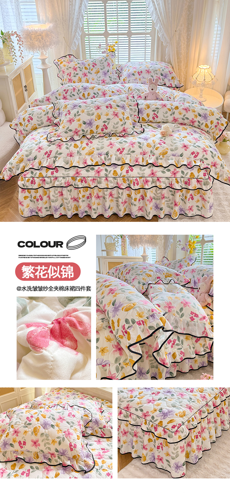 (总)优家居 2025新品水洗棉全夹棉床裙四件套韩版糯糯棉水洗皱皱纱床罩花边被套枕套直播爆款,莓好时光,秘园絮语,花花田园,爱心蝴蝶结,巴宝格-咖,豹纹-咖,蝶舞芳华,繁花似锦,粉色猫猫,粉雾结语,陌上花开,紫雾花园