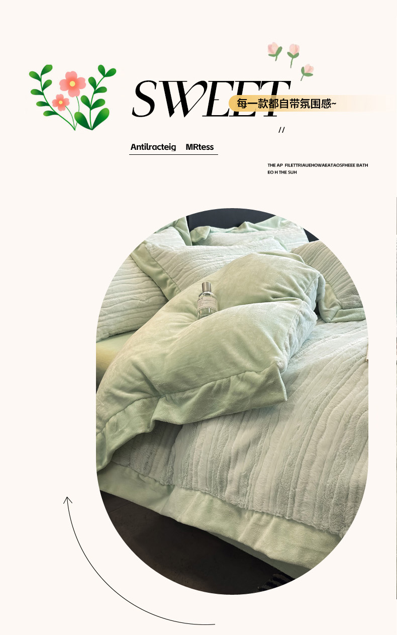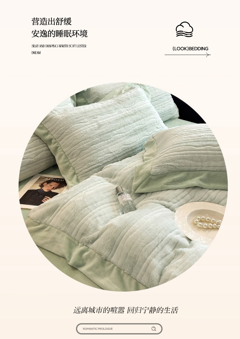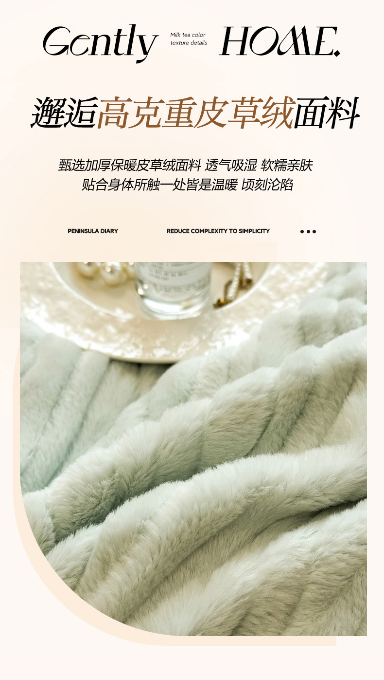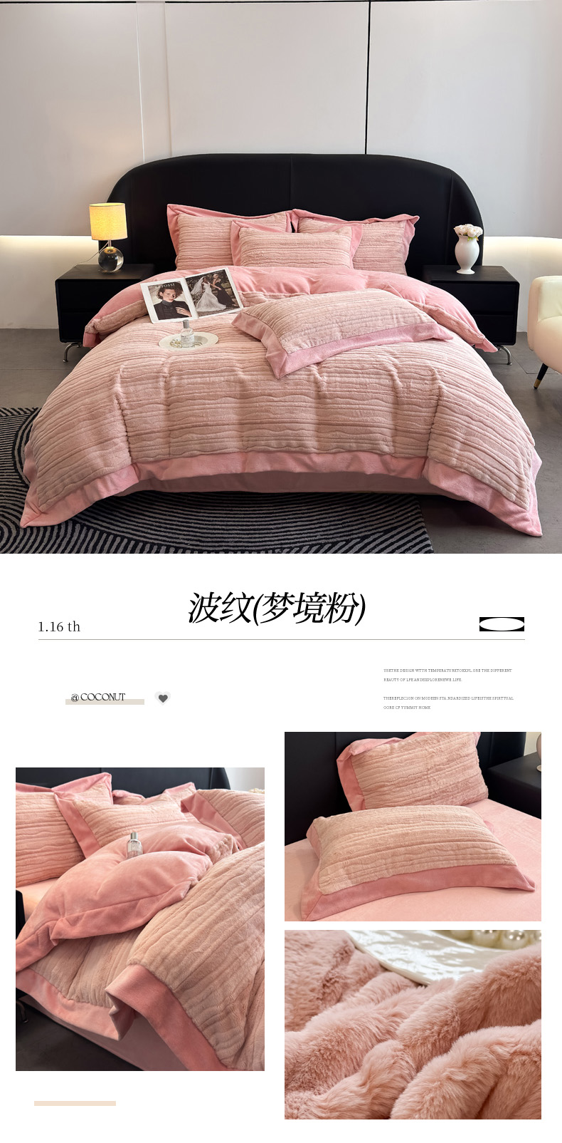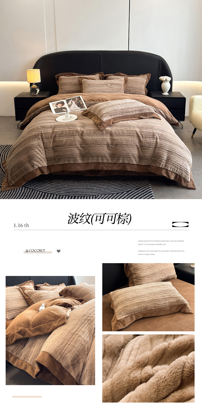 商品名称:九花鹿 2025新款380克宽边丹麦皮草绒四件套-波纹系列 波纹-可可棕