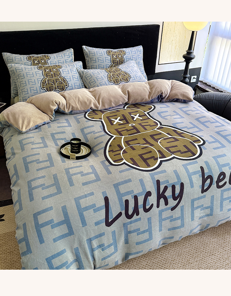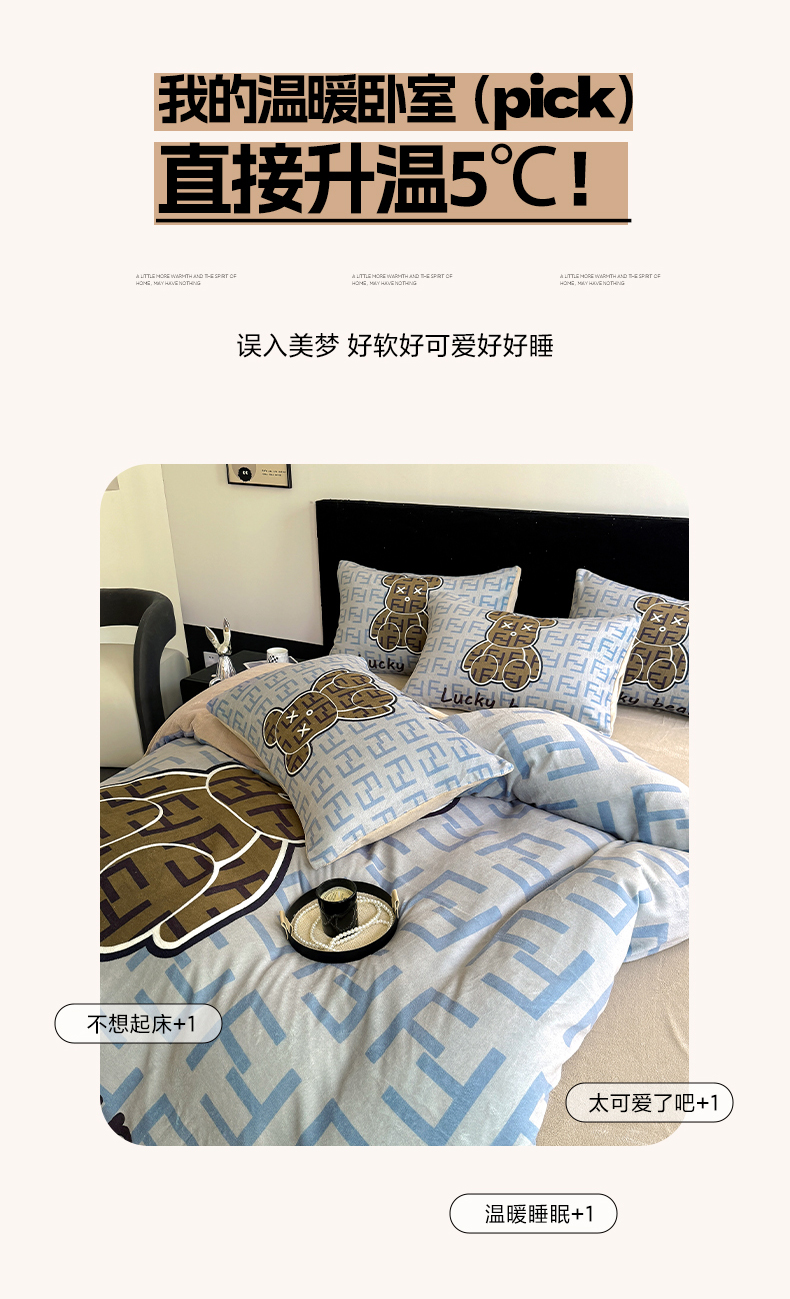 (总)摩卡(乐趣) 2025新款牛奶绒大版数码印花四件套,白香花,芬利熊,黑白V,灰迪,咔芬,卡布熊,可可熊,蓝白格,罗兰粉,萌迪,七彩熊,棋盘格公仔,山茶花,熊头白,熊仔白,熊仔咖