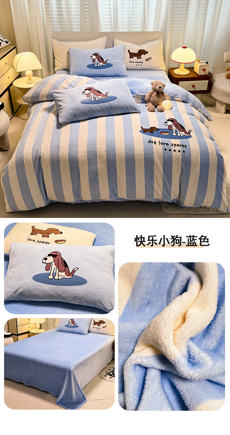 (总)经年 2025爆款直播 高克重大版卡通牛奶绒四件套-