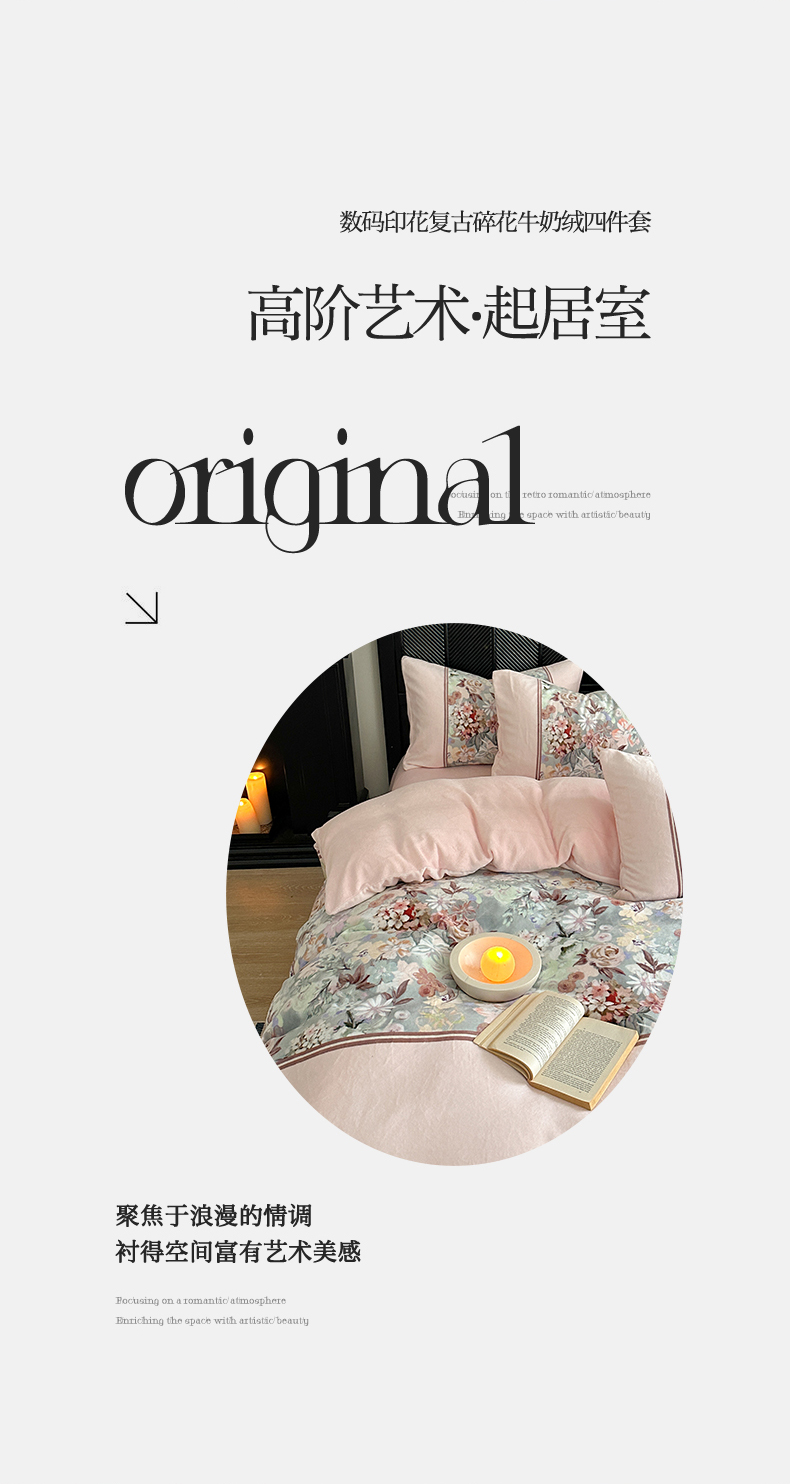 商品名称:(总)Sweet dreams甜梦 2025新款全消光数码印花加厚复古碎花牛奶绒四件套-实拍图
