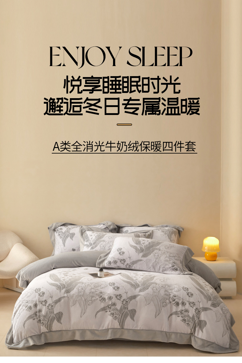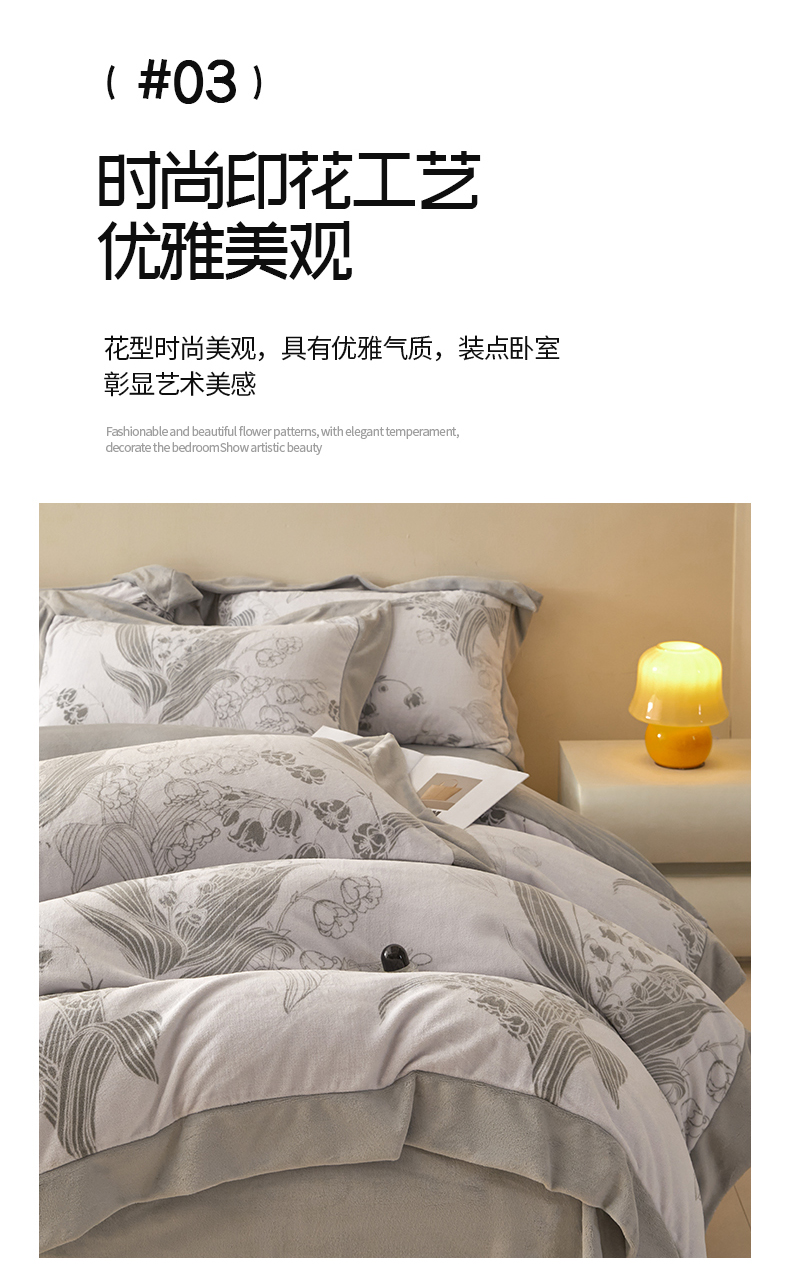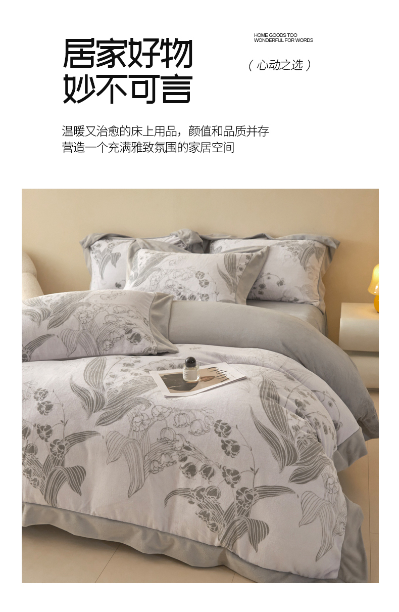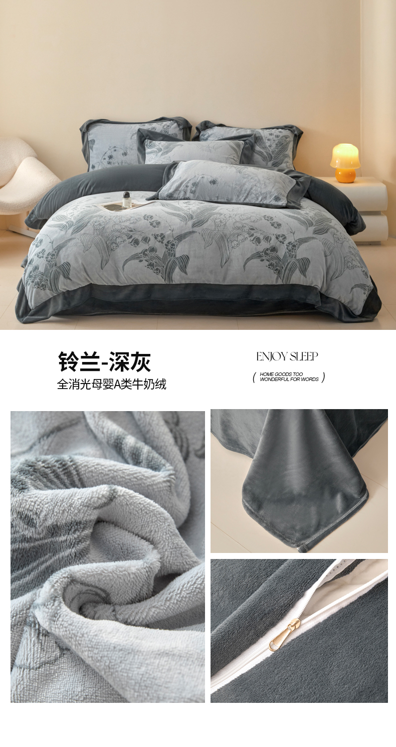 商品名称:(总)2025新款高克重9.2斤240克A类全消光印花拼角牛奶绒四件套-铃兰