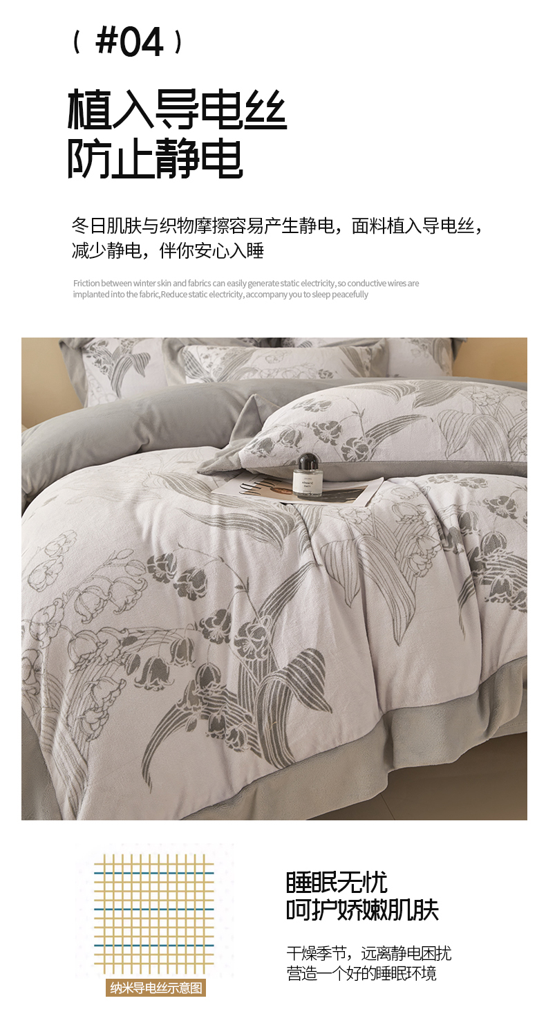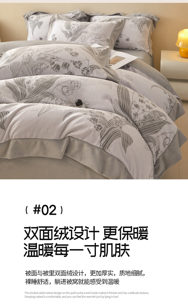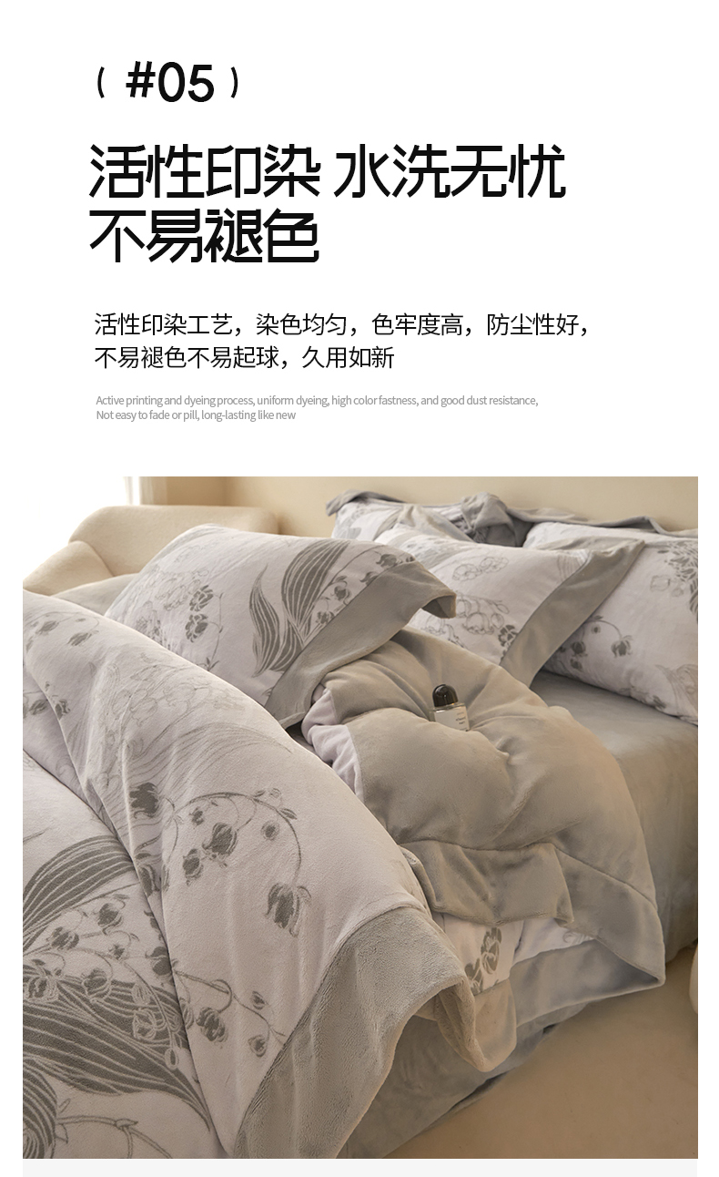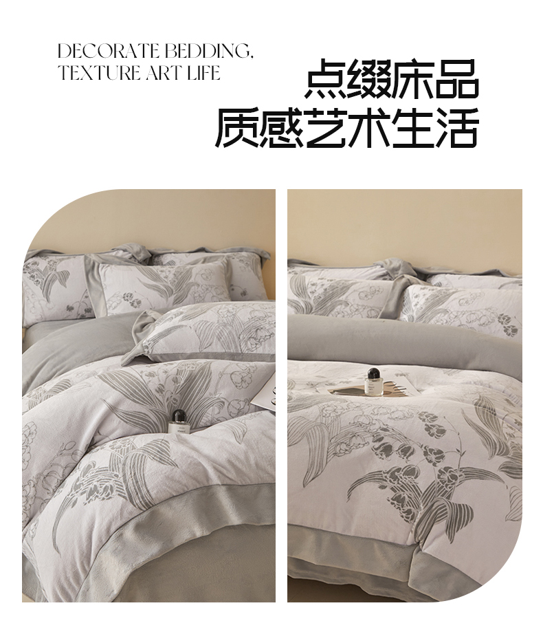 商品名称:(总)2025新款高克重9.2斤240克A类全消光印花拼角牛奶绒四件套-铃兰