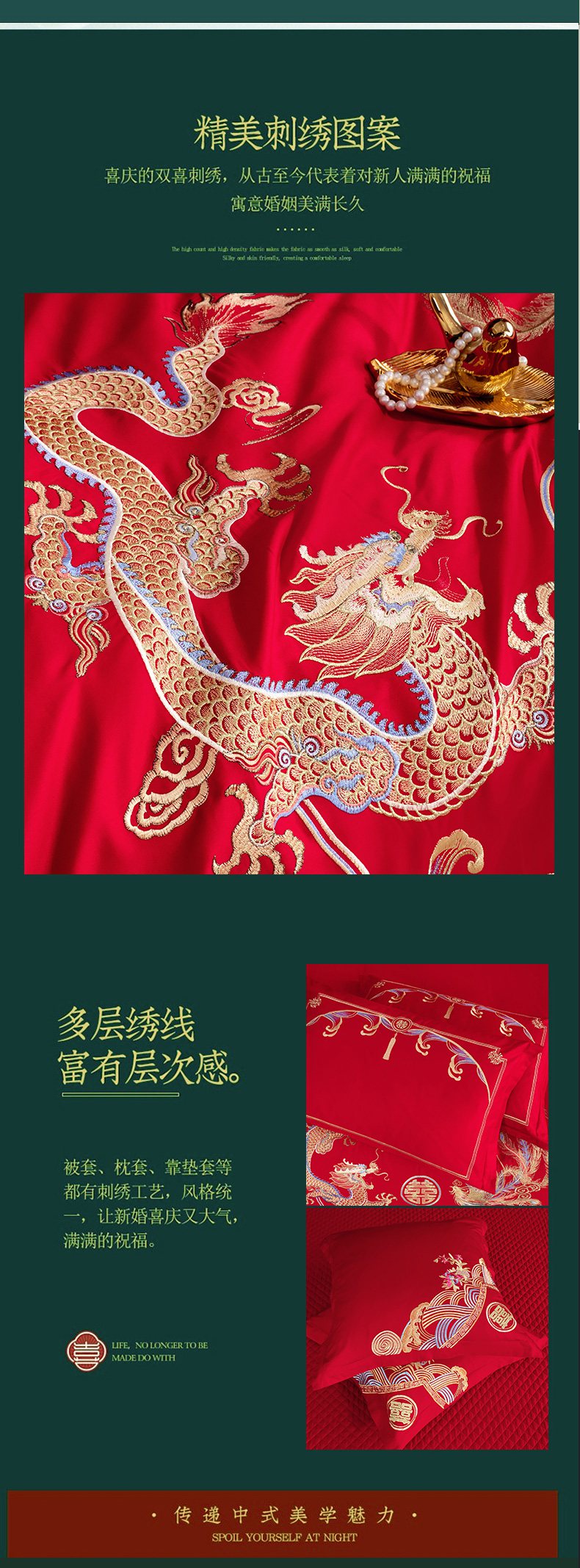 当前位置: 91家纺网 > 商品网购 > 床品套件 > 四件套 > 婚庆四件套 > 梵克保罗 2025秋冬新款全棉绣花婚庆四件套六件套靠垫 棉7流苏大龙凤