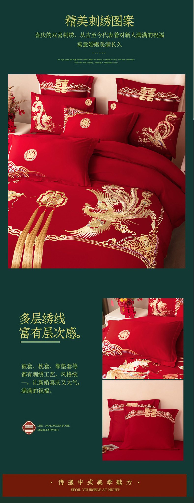 当前位置: 91家纺网 > 商品网购 > 床品套件 > 四件套 > 婚庆四件套 > 梵克保罗 2025秋冬新款全棉绣花婚庆四件套六件套靠垫 棉比翼双飞