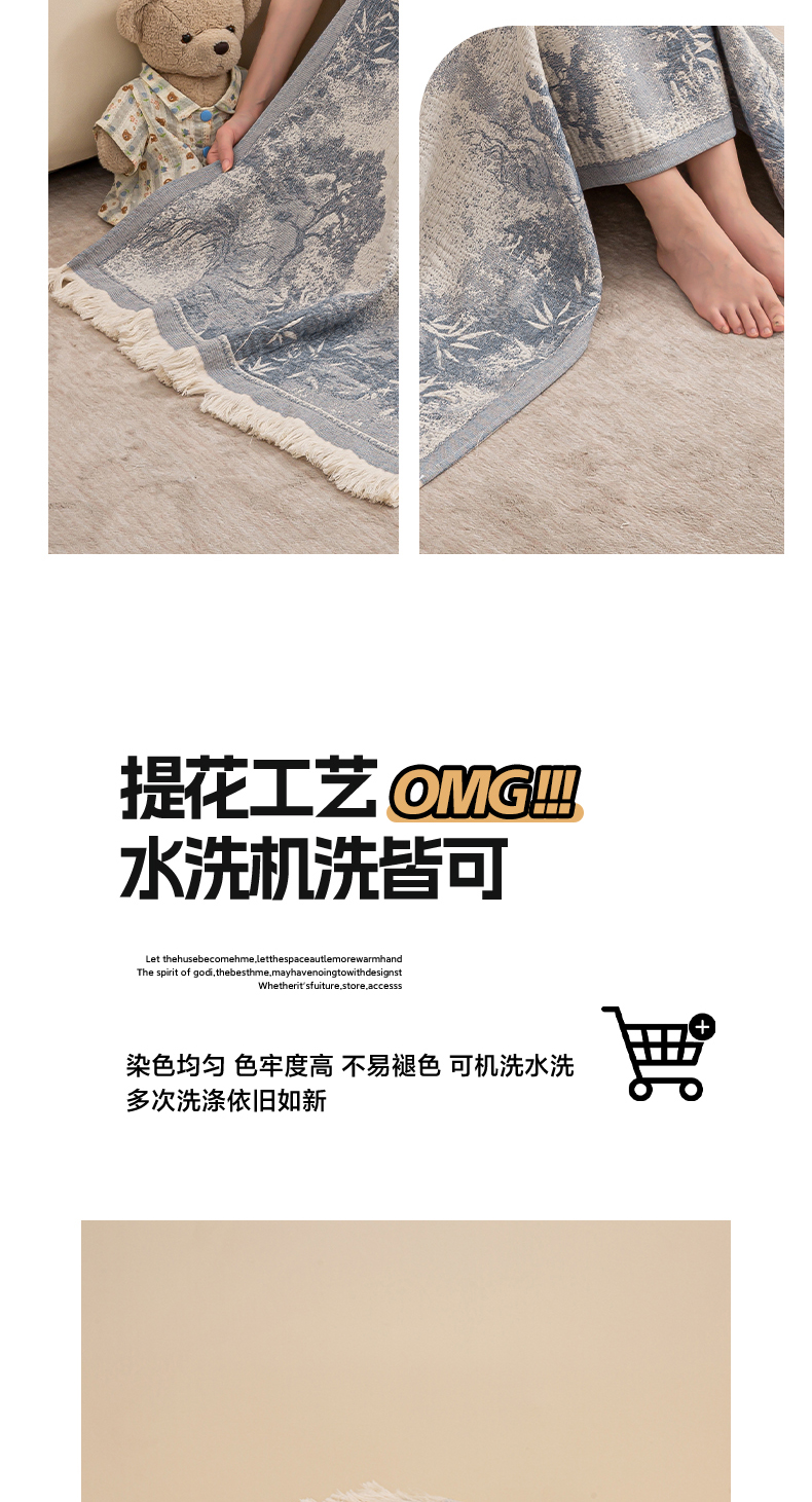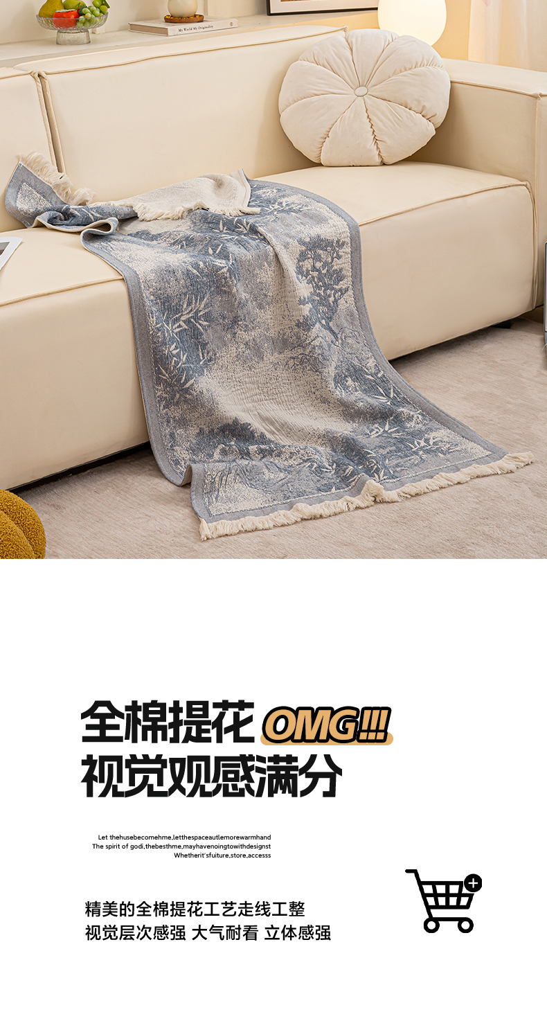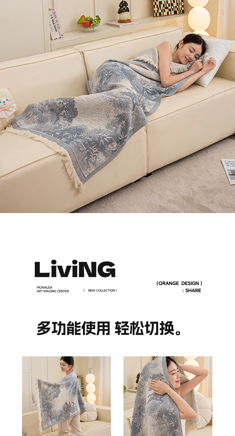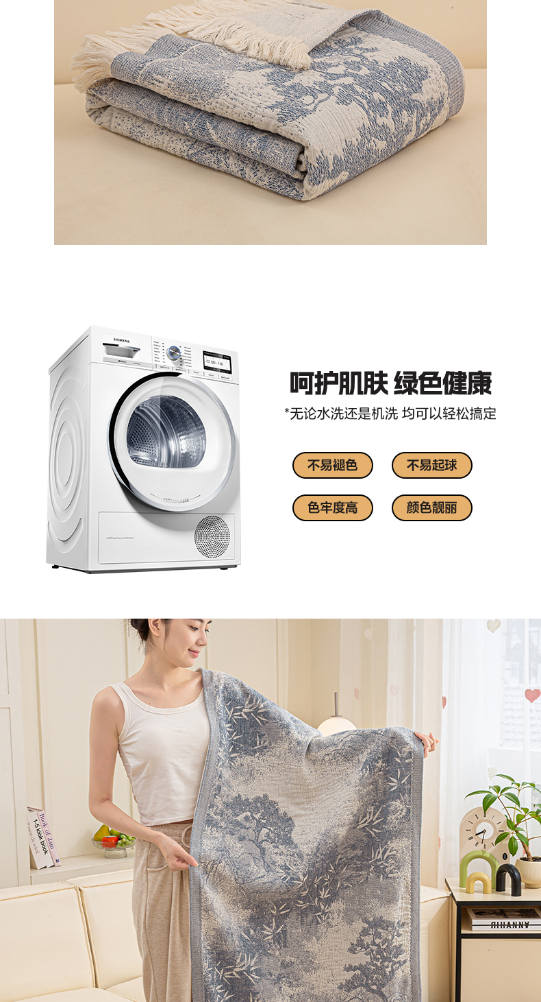 商品名称:恋人优选 2025新款A类流苏全棉纯棉提花四层水洗浴巾 苍松翠竹-蓝 66x150cm