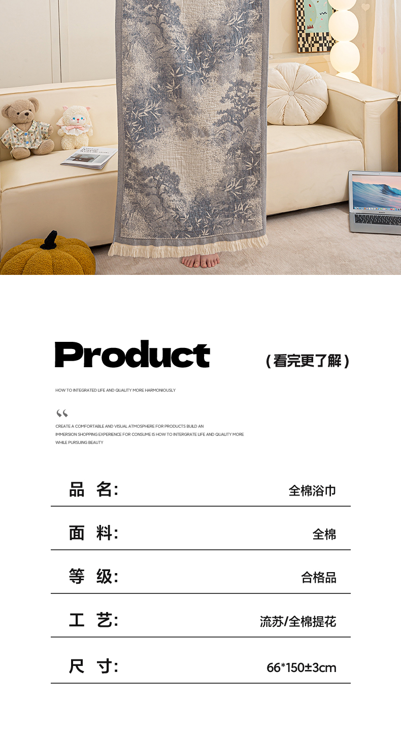 (总)恋人优选 2025新款流苏全棉纯棉提花四层水洗浴巾,百合绽放-灰 66x150cm,百合绽放-米 66x150cm,步步莲花-卡色 66x150cm,步步莲花-绿 66x150cm,步步莲花-米白 66x150cm,苍松翠竹-灰 66x150cm,苍松翠竹-蓝 66x150cm,春夏秋冬-灰 66x150cm,春夏秋冬-米 66x150cm,花飞蝶舞-蓝 66x150cm,花飞蝶舞-绿 66x150cm,花飞蝶舞-米 66x150cm,锦绣河山-咖蓝 66x150cm,锦绣河山-蓝灰 66x150cm,锦绣河山-米白 66x150cm,特立独行-粉 66x150cm,特立独行-蓝 66x150cm,维罗妮卡-灰 66x150cm,维罗妮卡-蓝 66x150cm,一叶知秋-兰 66x150cm,一叶知秋-绿 66x150cm,一叶知秋-米 66x150cm,一叶知秋-牛仔蓝 66x150cm