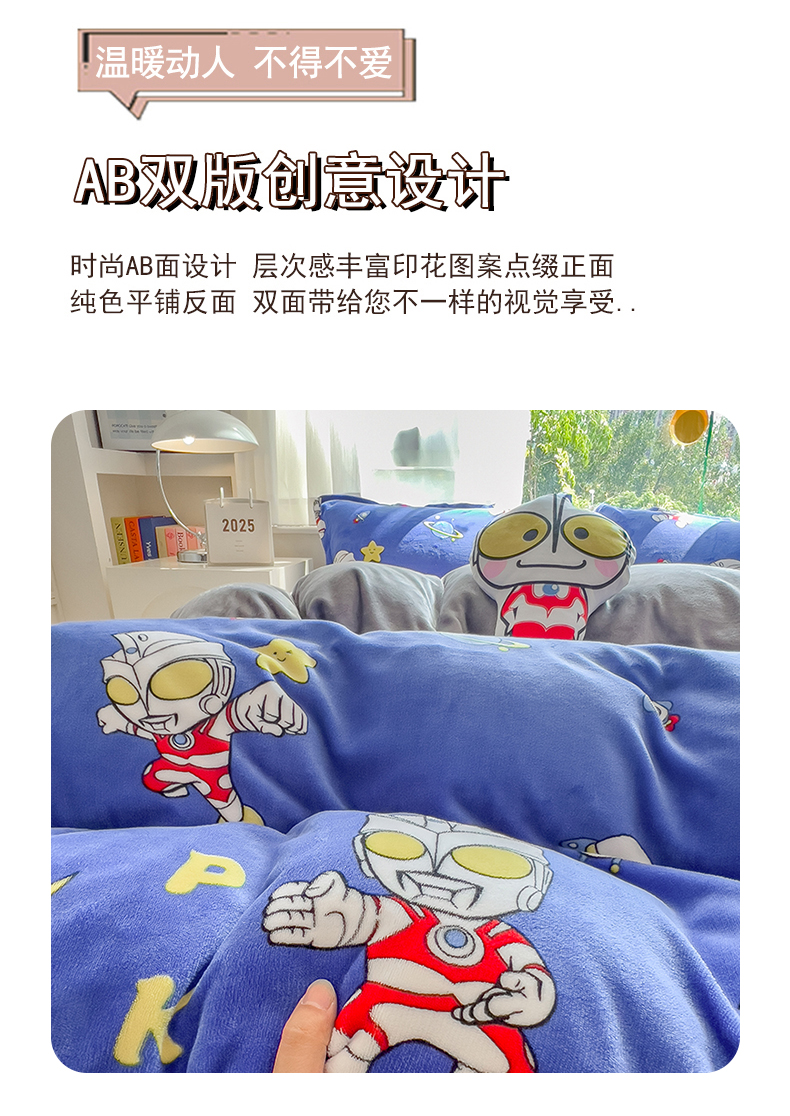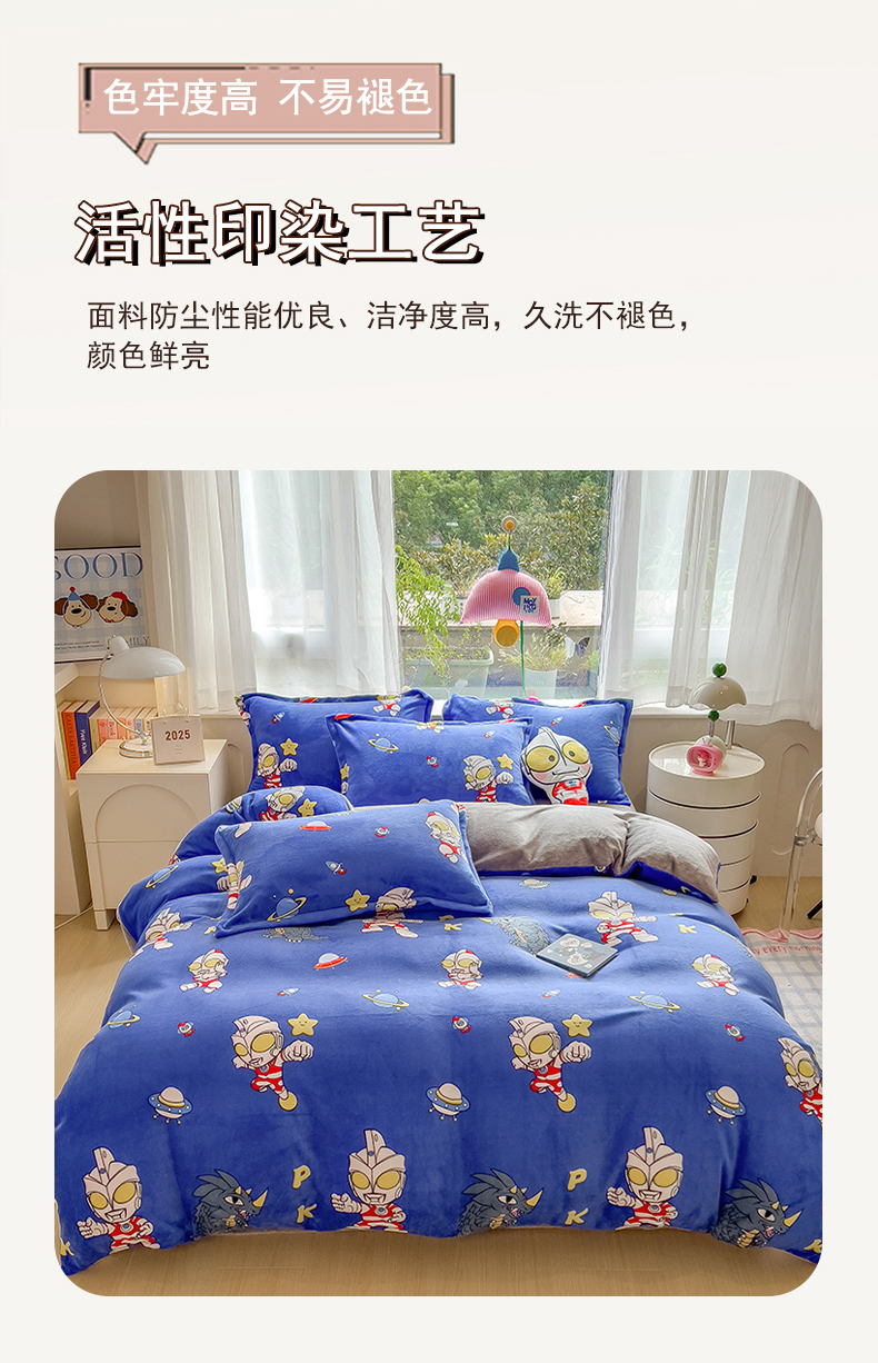 当前位置: 91家纺网 > 商品网购 > 床品套件 > 四件套 > 牛奶绒四件套 > 云恋家纺 2025新款亲肤舒适卡通牛奶绒活性印染四件套 奥特曼-深蓝