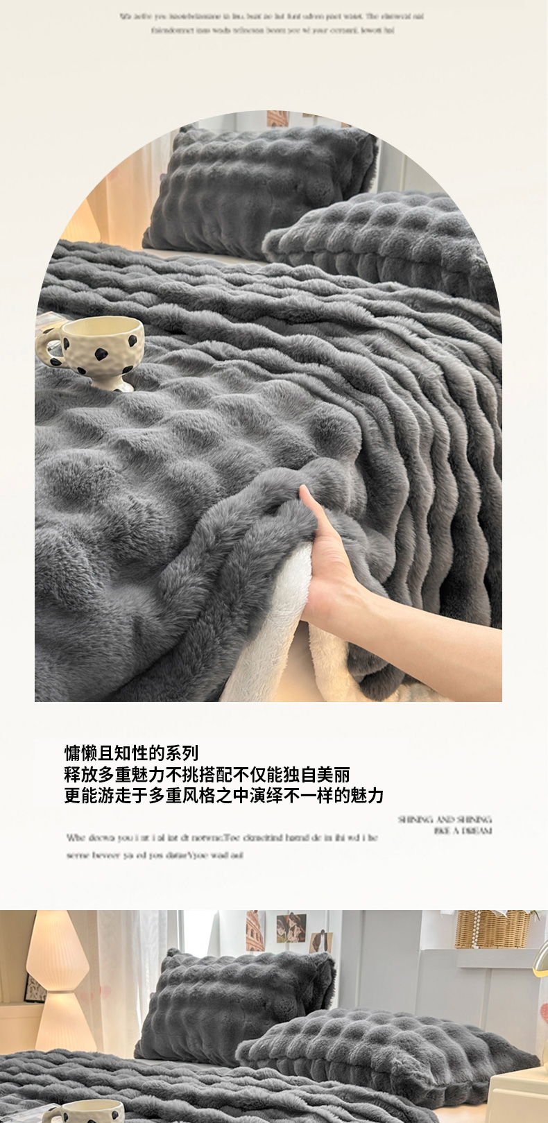 • 91家纺网 家纺一手货源 找家纺 麒东家纺 2025新款泡泡绒兔毛绒床单 深灰