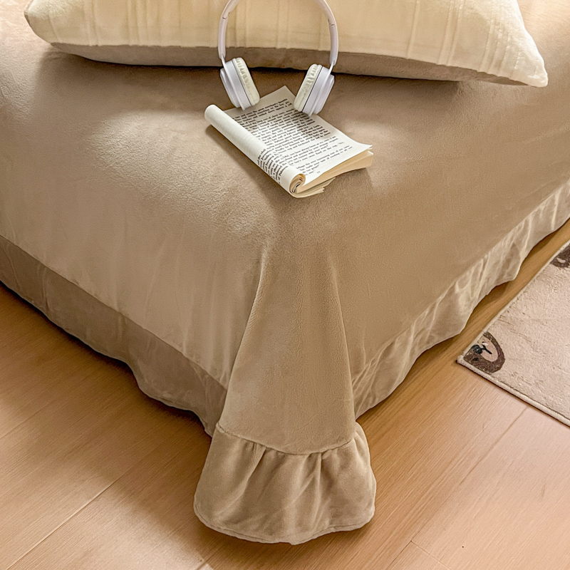 (总)沐晴家纺 2025新款纯色牛奶绒法式床盖四件套花边床盖三件套单被套,组合图仅供展示不可下单,豆绿,高级灰,魅紫,雾霾蓝,胭粉