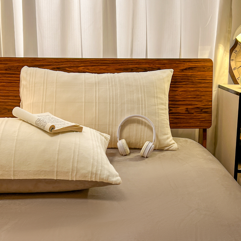 沐晴家纺 2024秋冬新款雕花牛奶绒纯色简约轻奢四件套 简约条纹-奶白