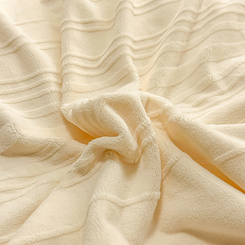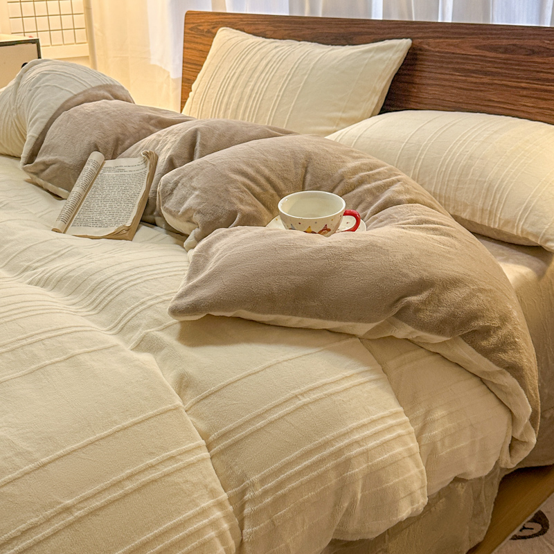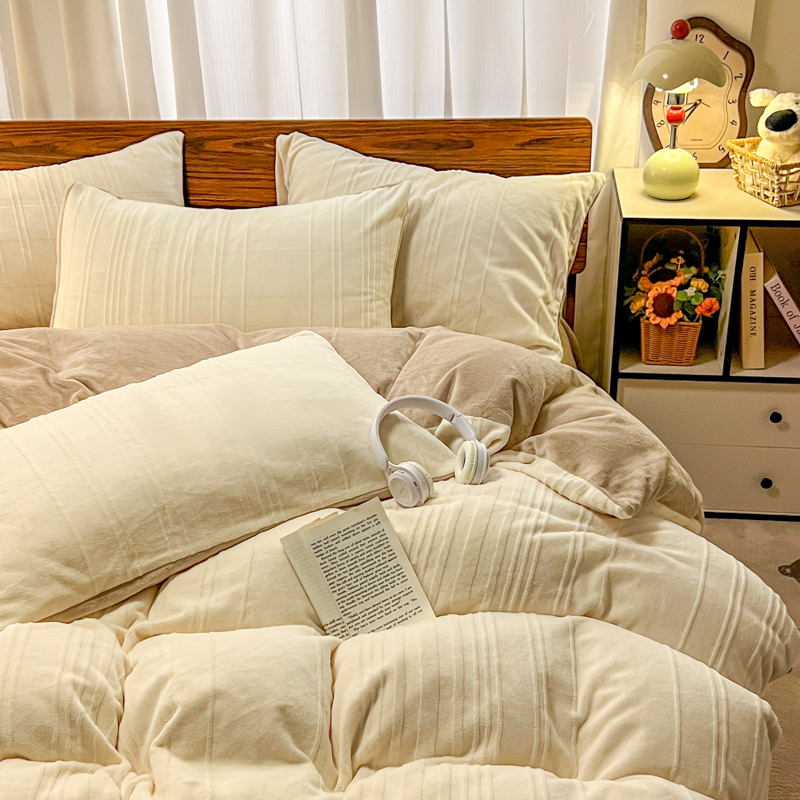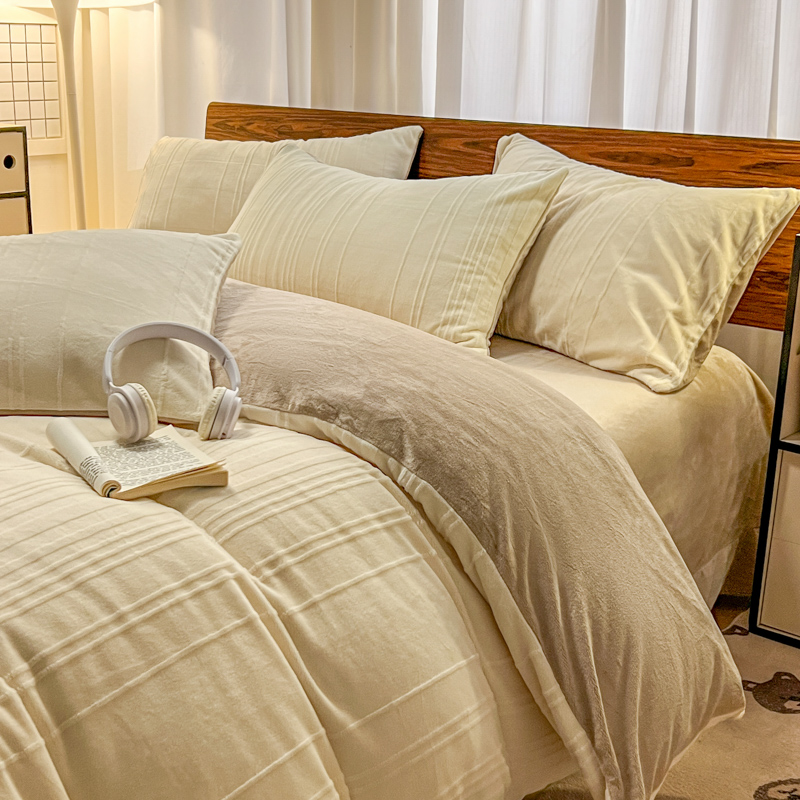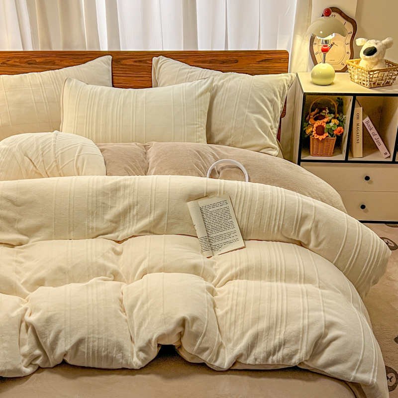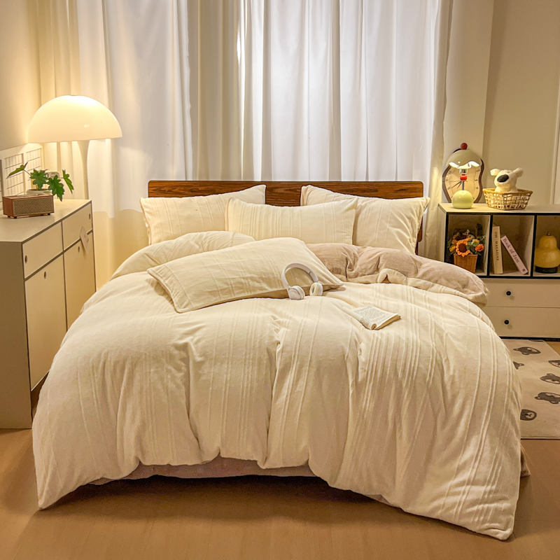 商品名称:沐晴家纺 2024秋冬新款雕花牛奶绒纯色简约轻奢四件套 简约条纹-奶白