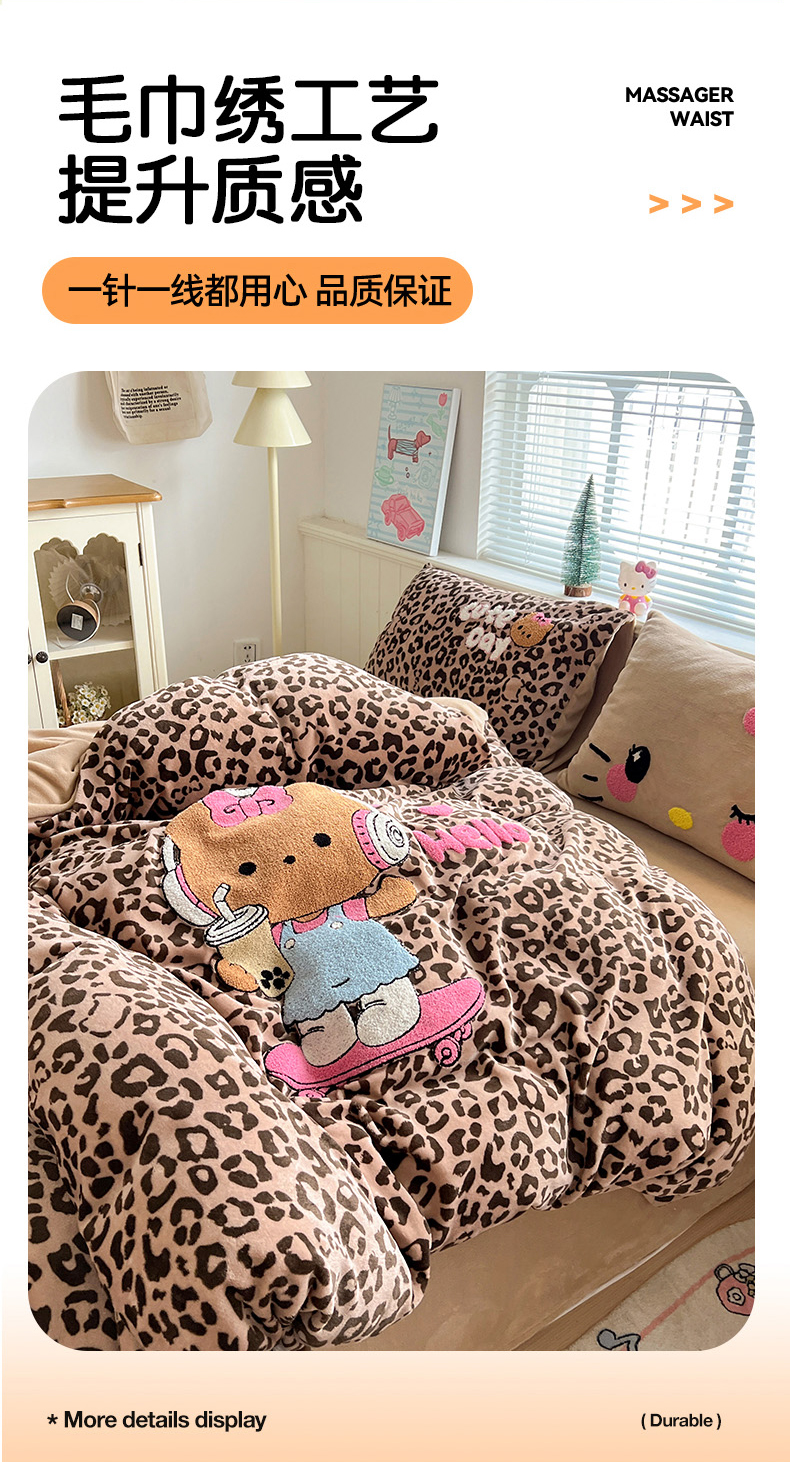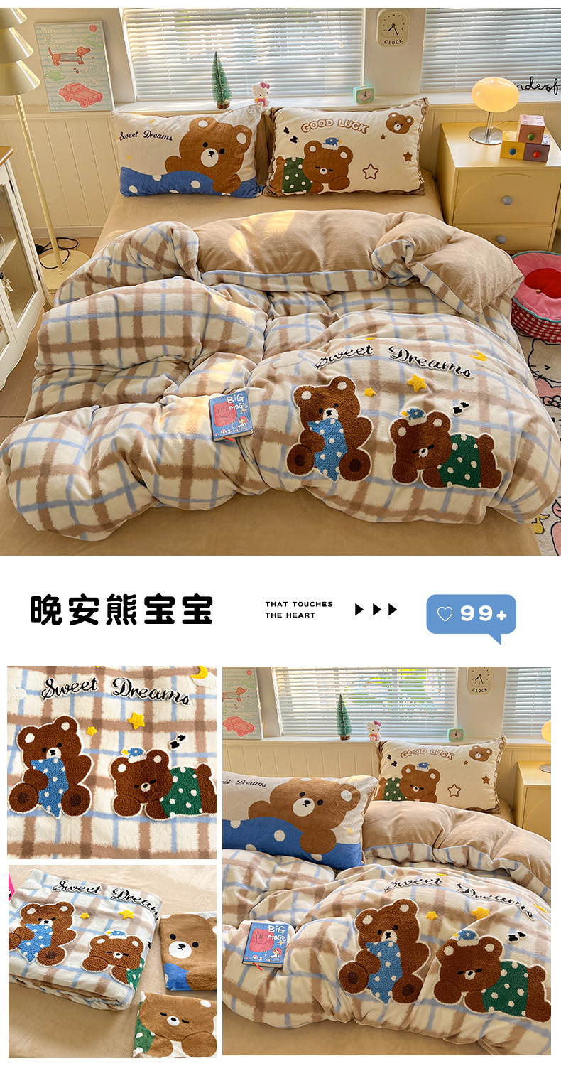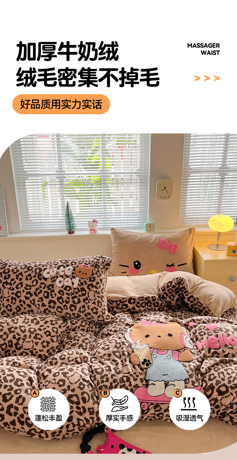 当前位置: 91家纺网 > 商品网购 > 床品套件 > 四件套 > 牛奶绒四件套 > 优选 2025新款高克重200g牛奶绒数码印花毛巾绣卡通四件套直播爆款电商爆款 黑皮咖