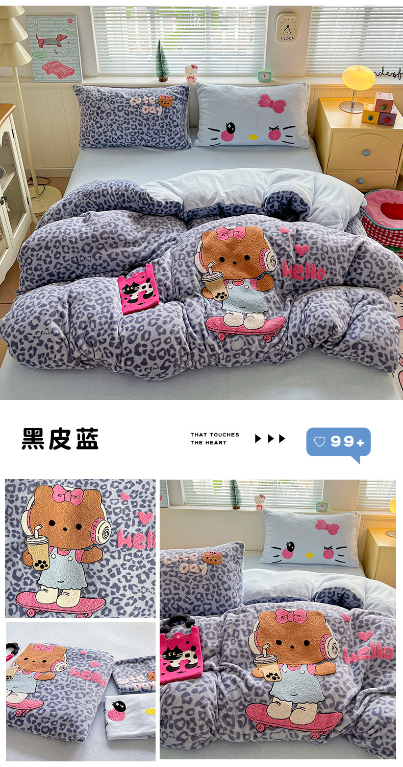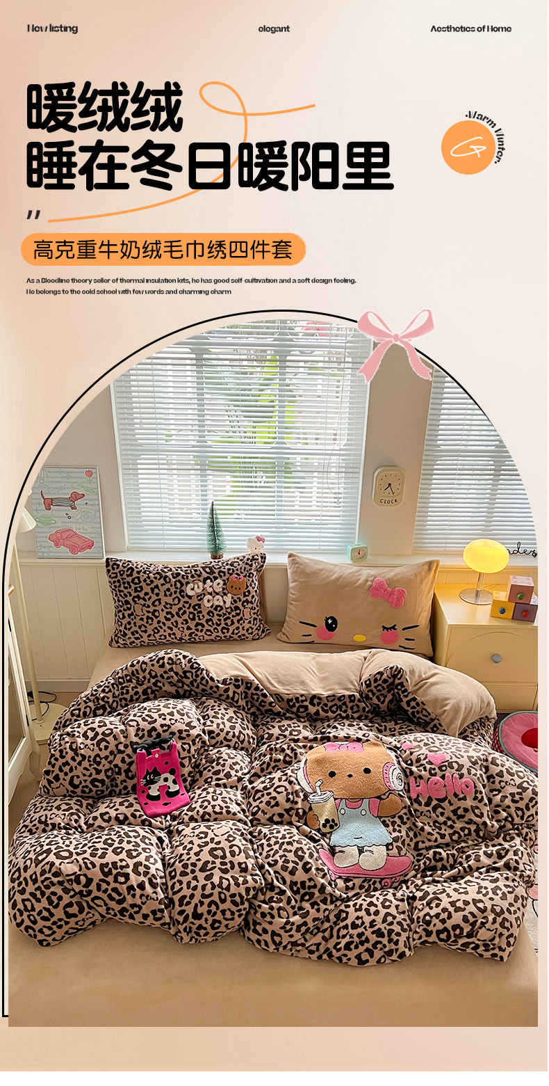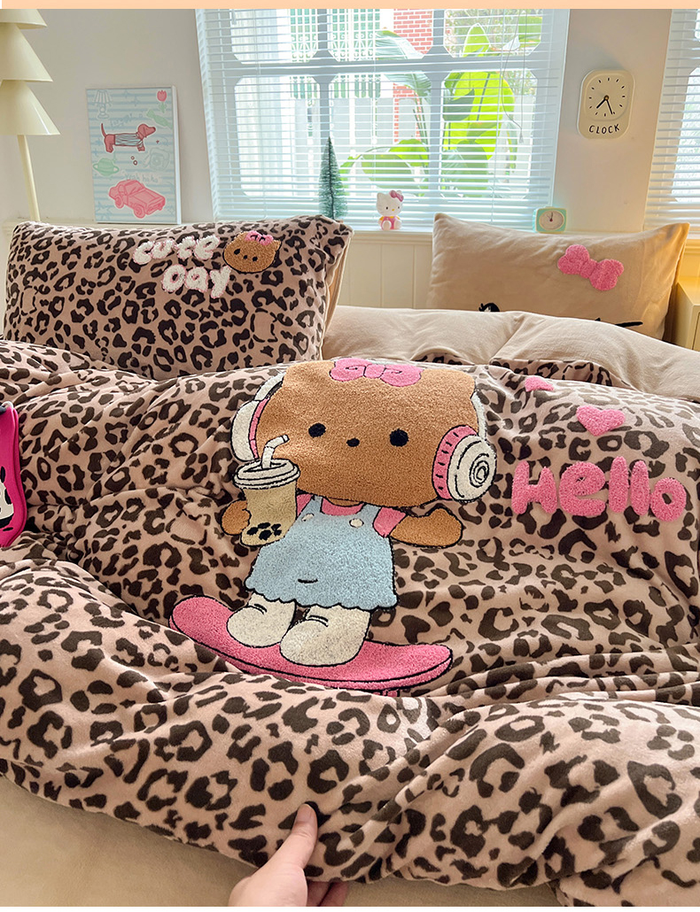 当前位置: 91家纺网 > 商品网购 > 床品套件 > 四件套 > 牛奶绒四件套 > 优选 2025新款高克重200g牛奶绒数码印花毛巾绣卡通四件套直播爆款电商爆款 黑皮咖