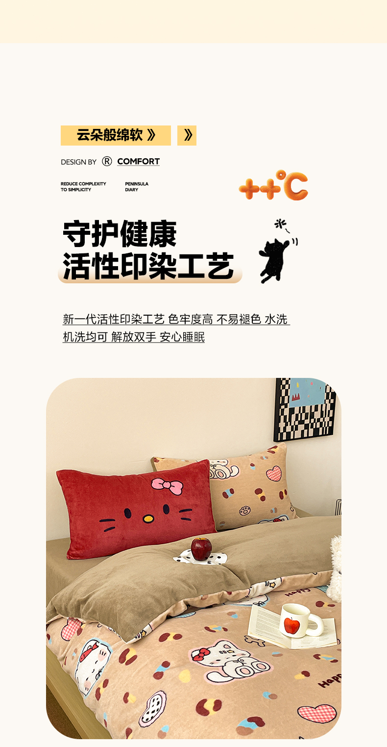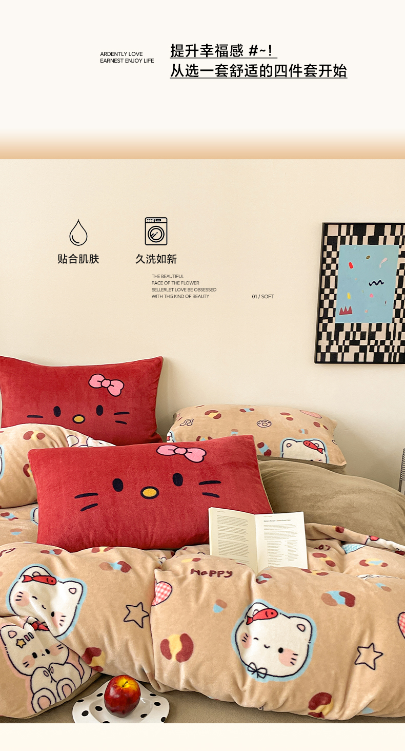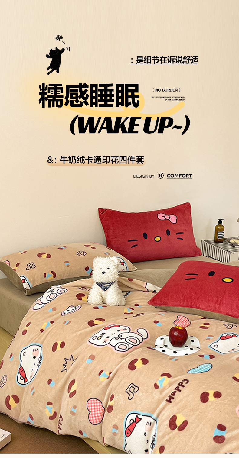 当前位置: 91家纺网 > 商品网购 > 床品套件 > 四件套 > 牛奶绒四件套 > 摩妮卡 2025新款牛奶绒枕套混搭卡通复古四件套 豹纹小猫