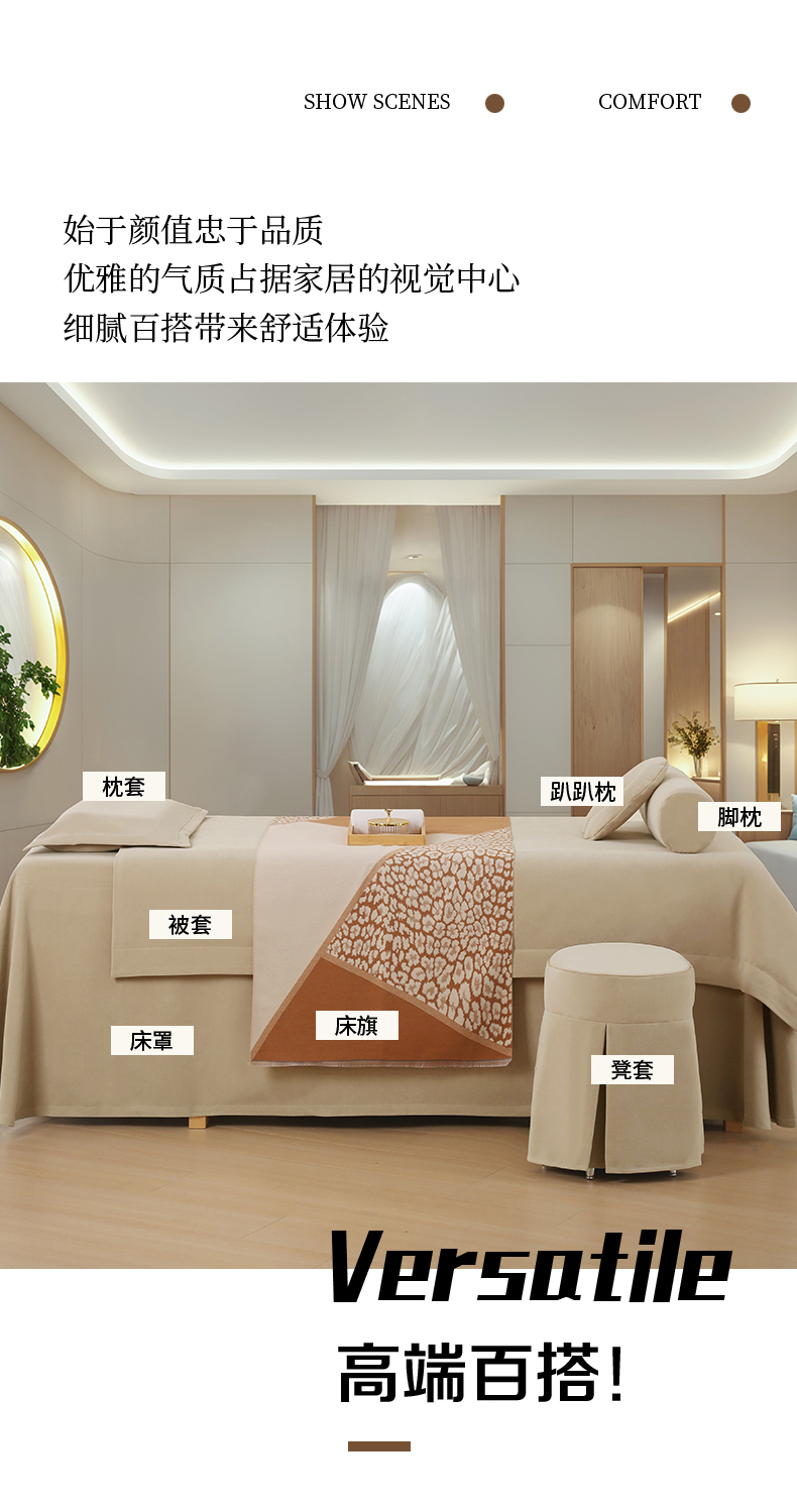 商品名称:(总)安力森/诚臻酒店用品 2025新款轻奢美容床罩 美容院专用亲肤理疗床品套件