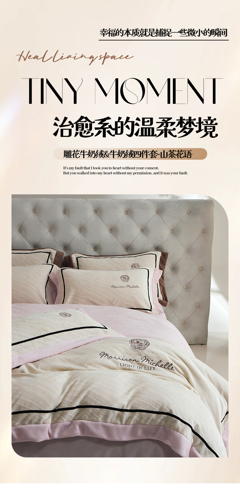 优悦生活馆 2025新款雕花绒牛奶绒刺绣四件套-山茶花语 山茶花语-咖