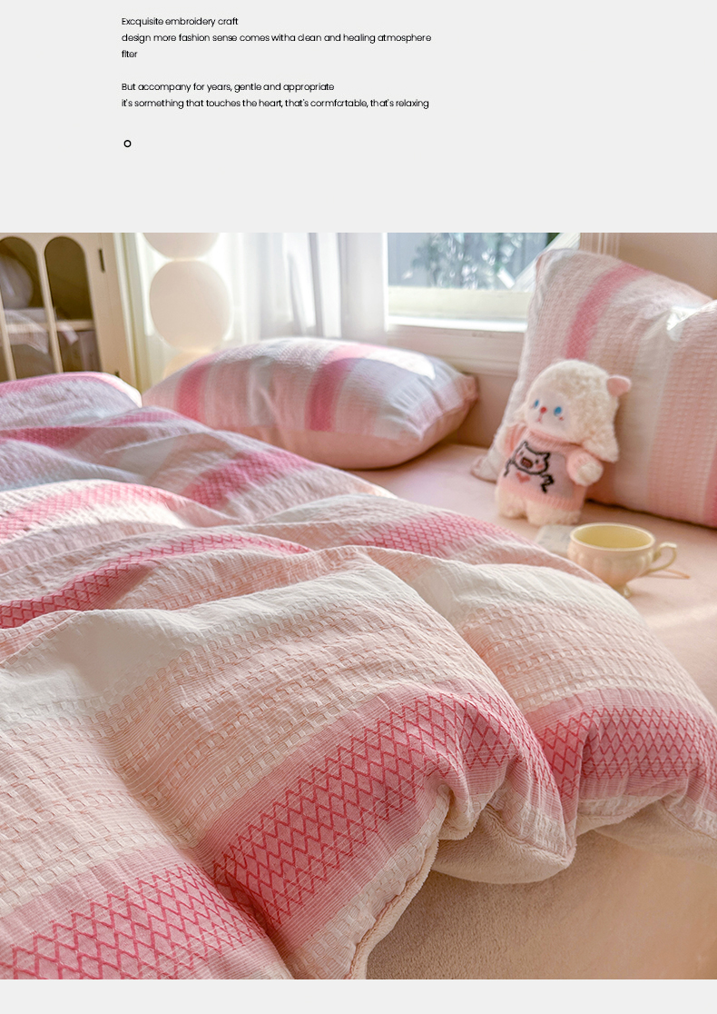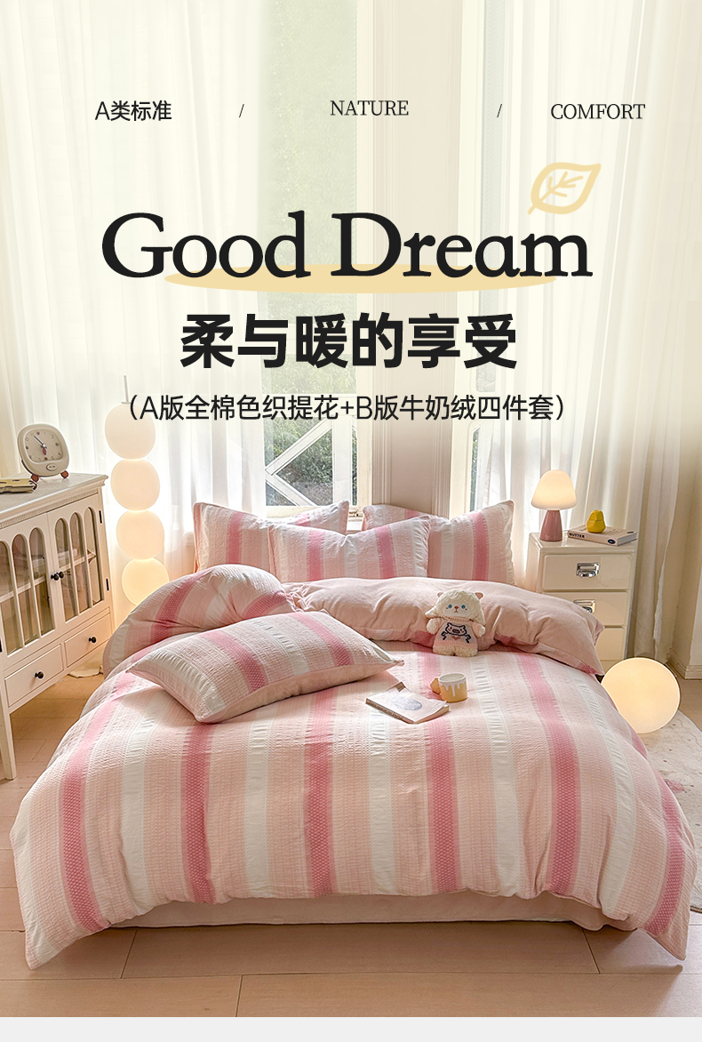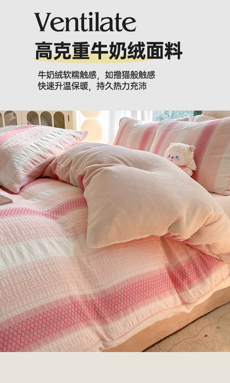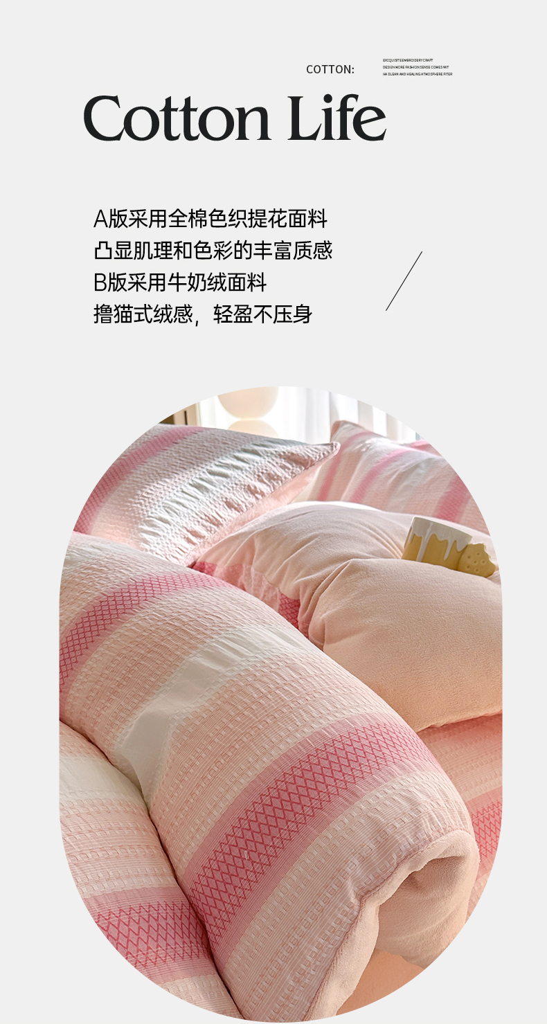 当前位置: 91家纺网 > 商品网购 > 床品套件 > 四件套 > 牛奶绒四件套 > 灰鲸 2025新款A版全棉色织提花B版牛奶绒四件套系列 棉+绒-泛歌粉