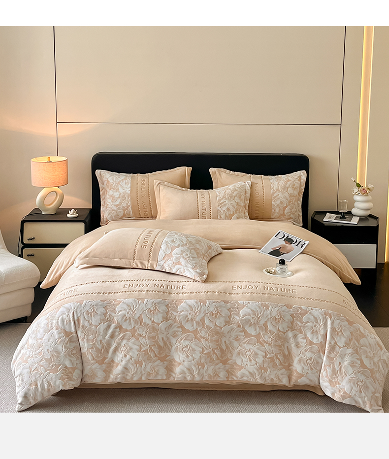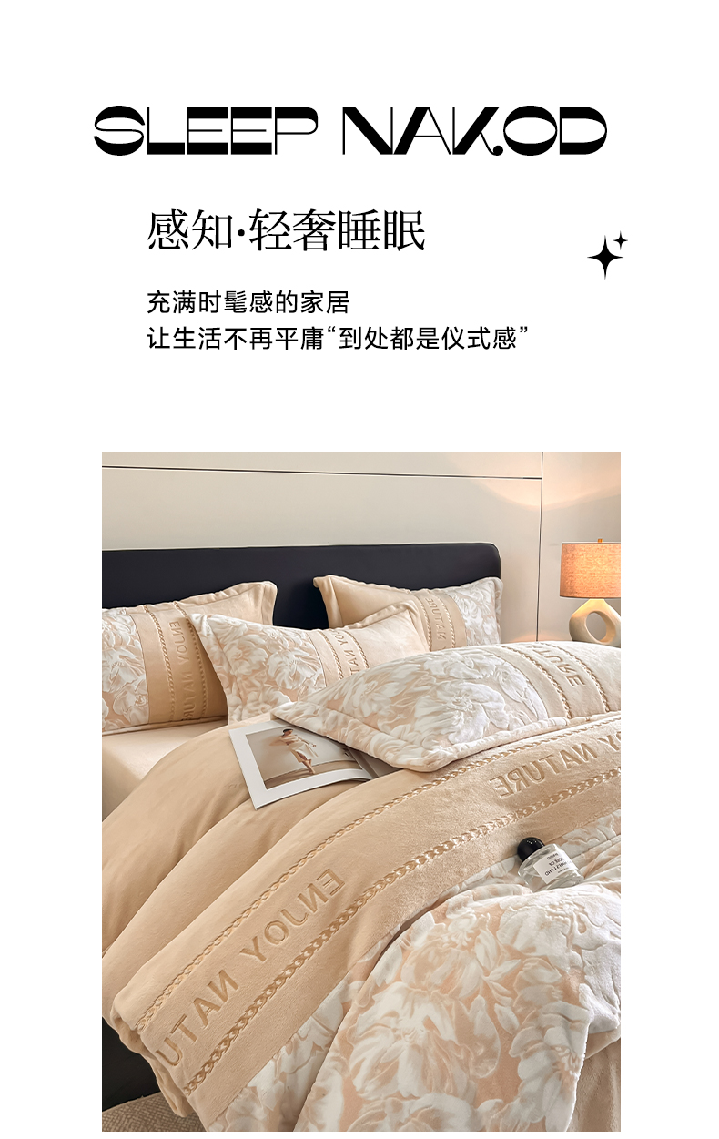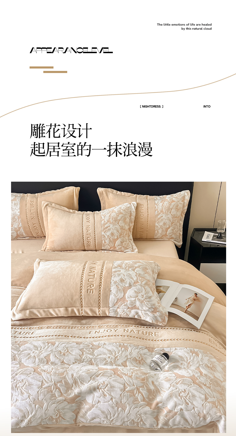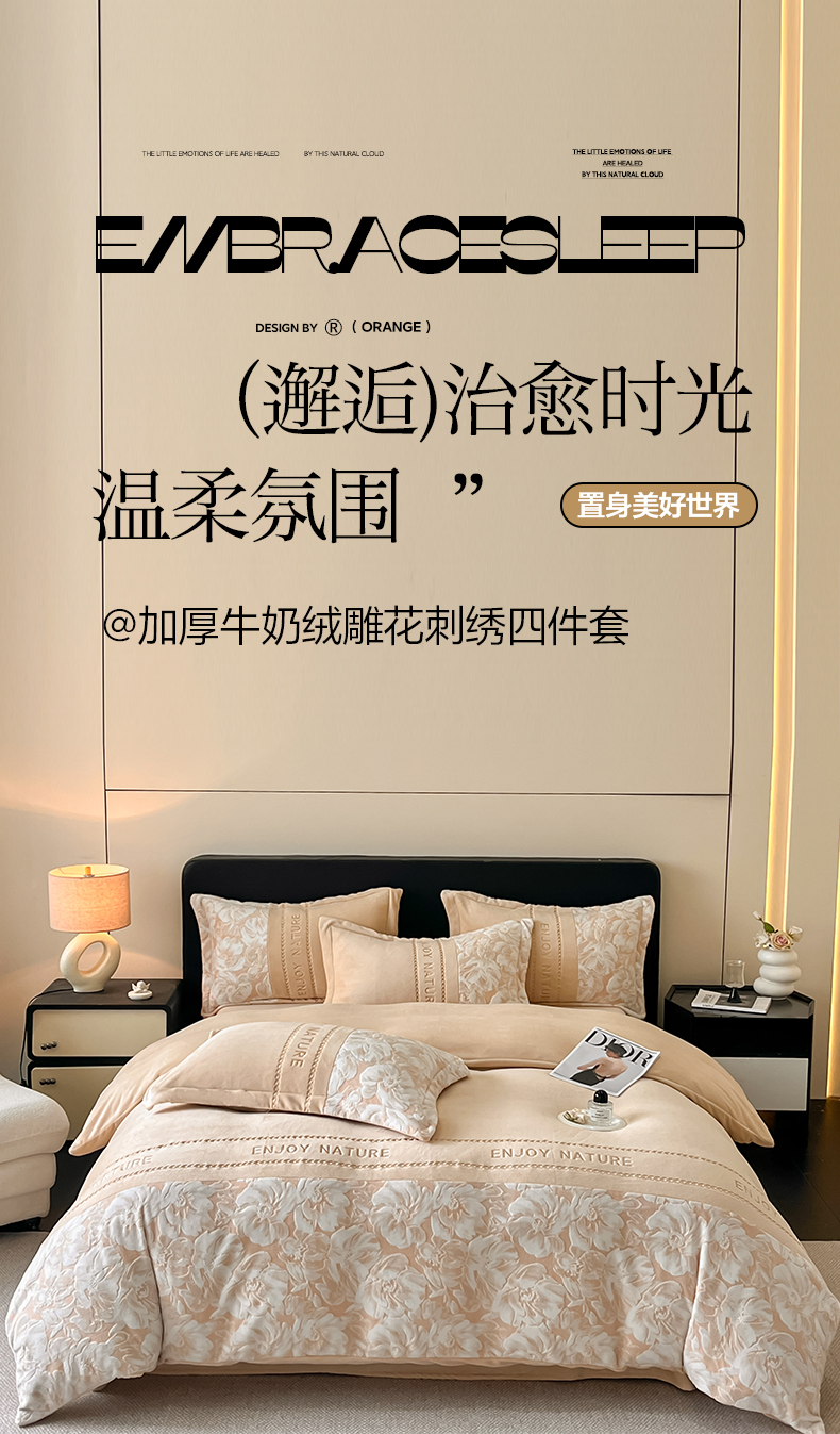 当前位置: 91家纺网 > 商品网购 > 床品套件 > 四件套 > 牛奶绒四件套 > 博纳家纺 2025新款加厚牛奶绒雕花刺绣四件套-繁花倾心 繁花倾心-香槟