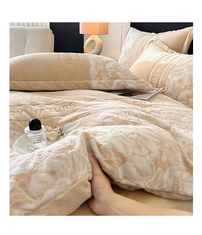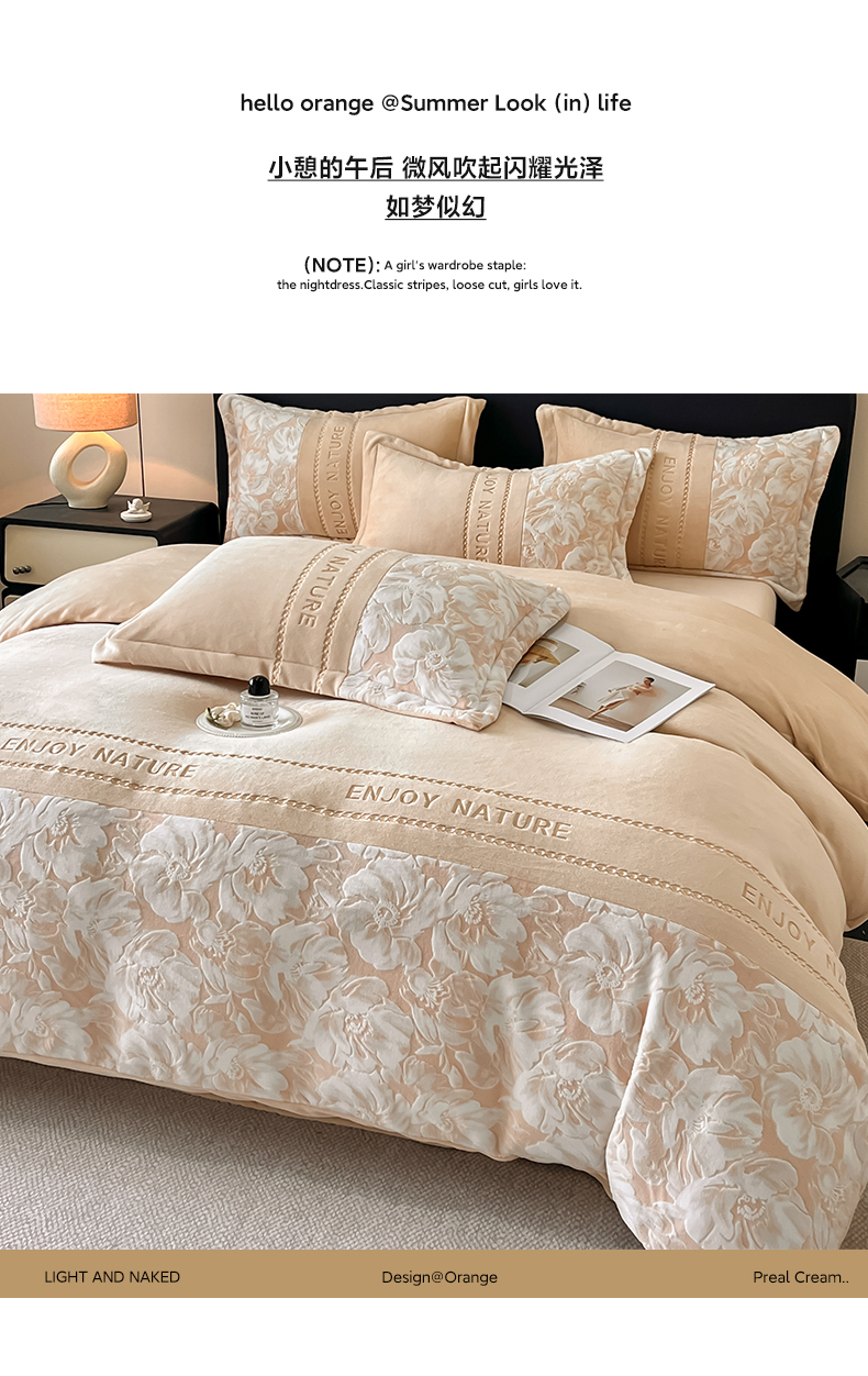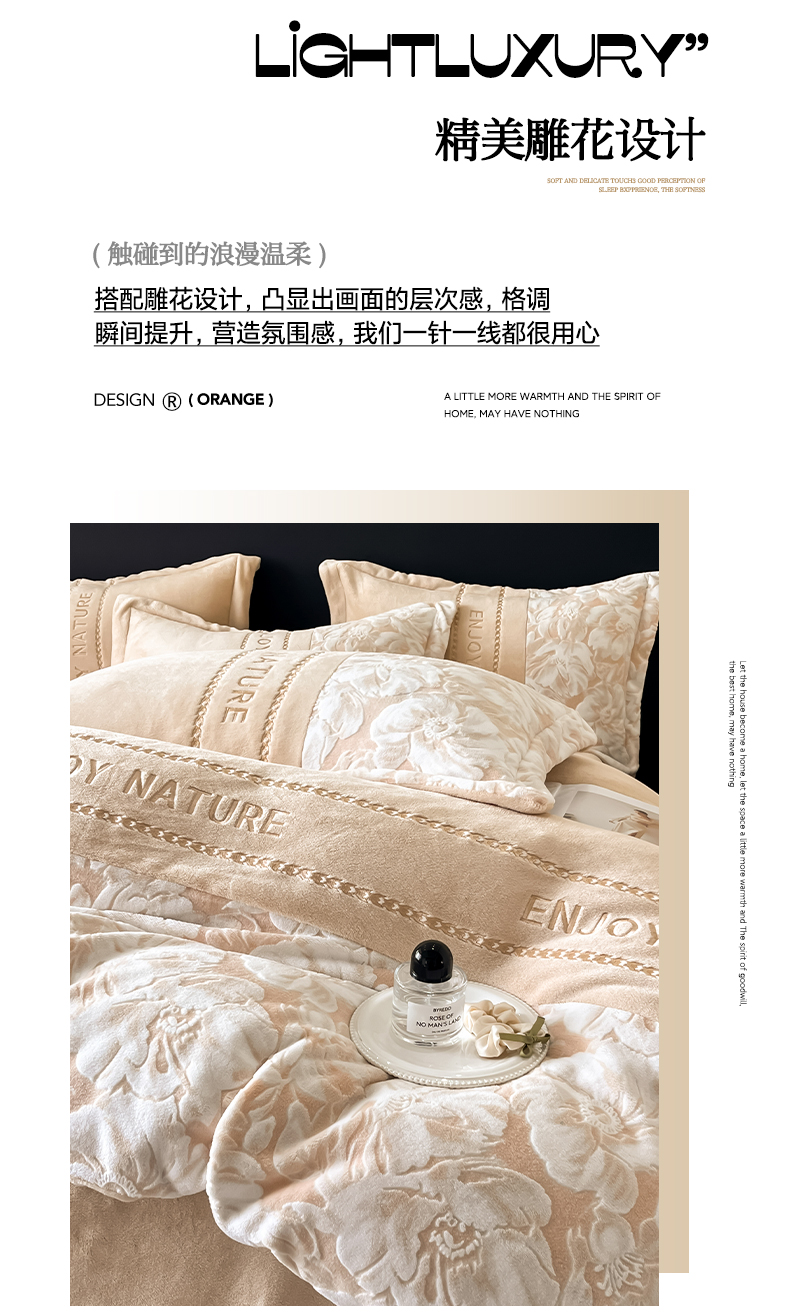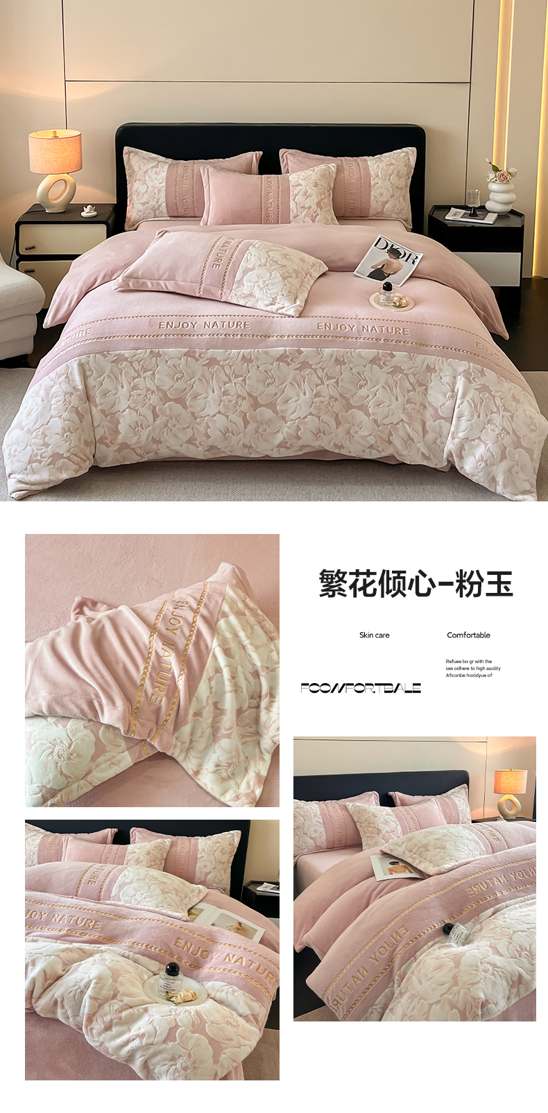 当前位置: 91家纺网 > 商品网购 > 床品套件 > 四件套 > 牛奶绒四件套 > 博纳家纺 2025新款加厚牛奶绒雕花刺绣四件套-繁花倾心 繁花倾心-香槟
