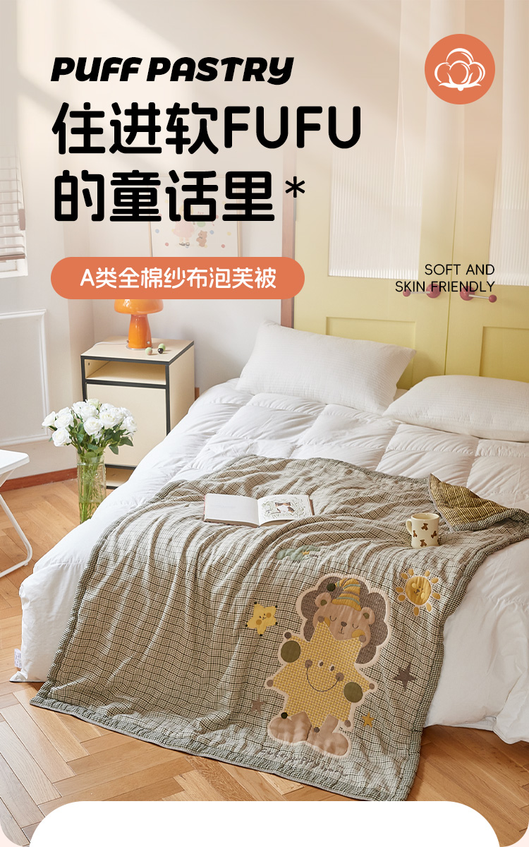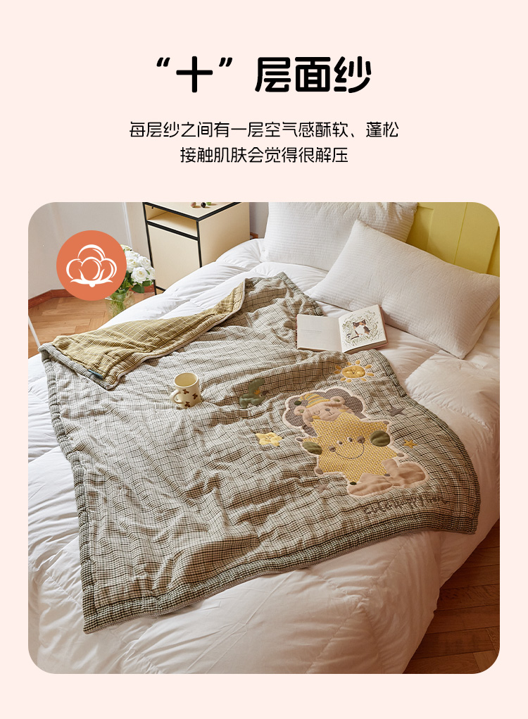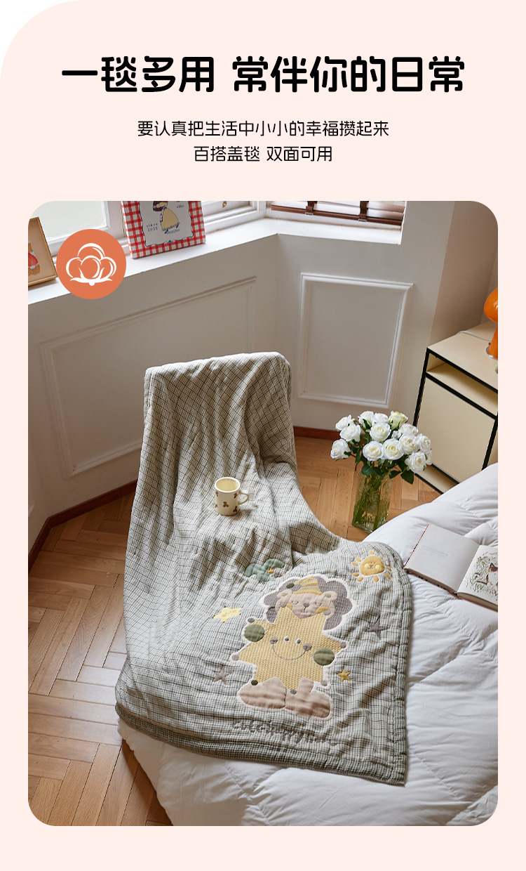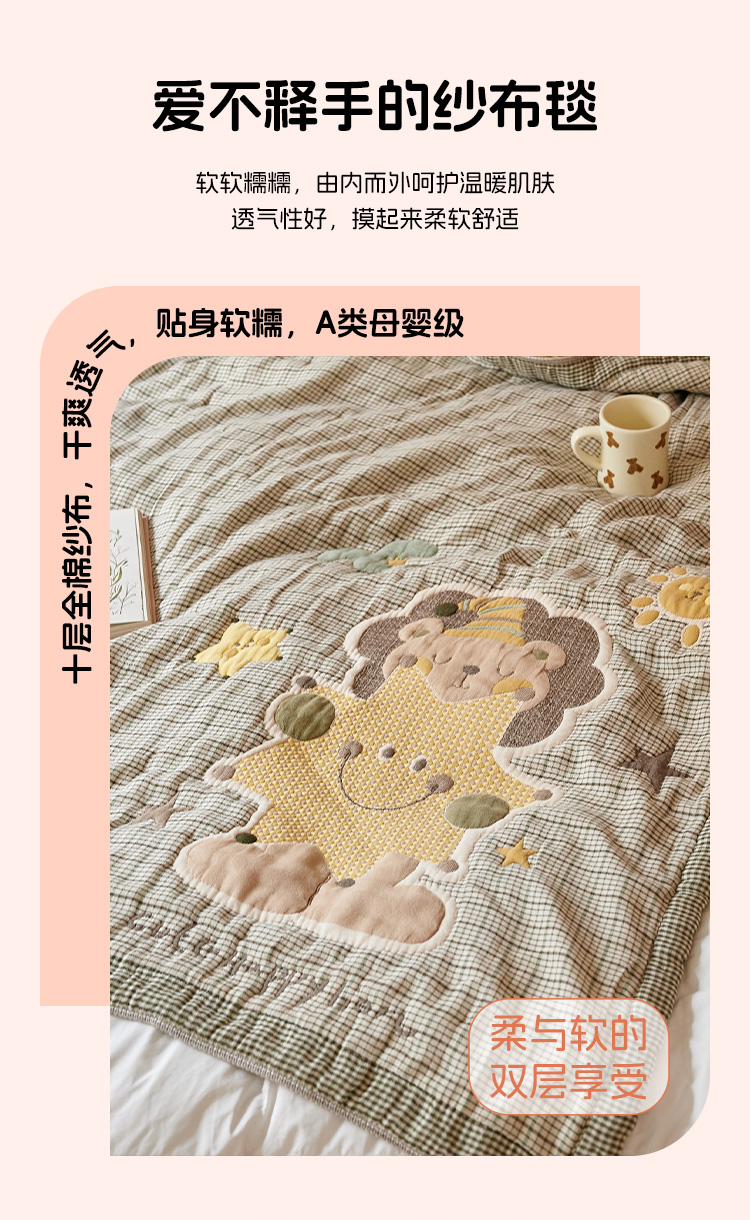 沐瑟家纺 2025新款全棉纱布泡芙被被子被芯-第二批 小狮子